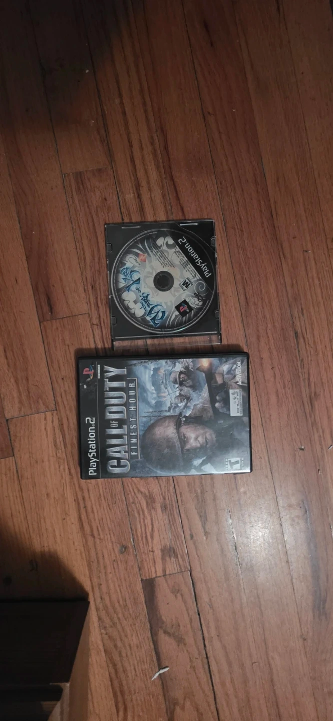 Two PlayStation 2 video games. Includes Kingdom Hearts and Call of Duty: Finest Hour. Both discs and cases are present.
