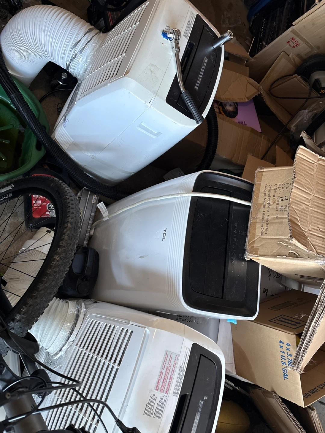 This is a TCL portable air conditioner. It includes an exhaust hose. The unit is white and has a digital display panel.