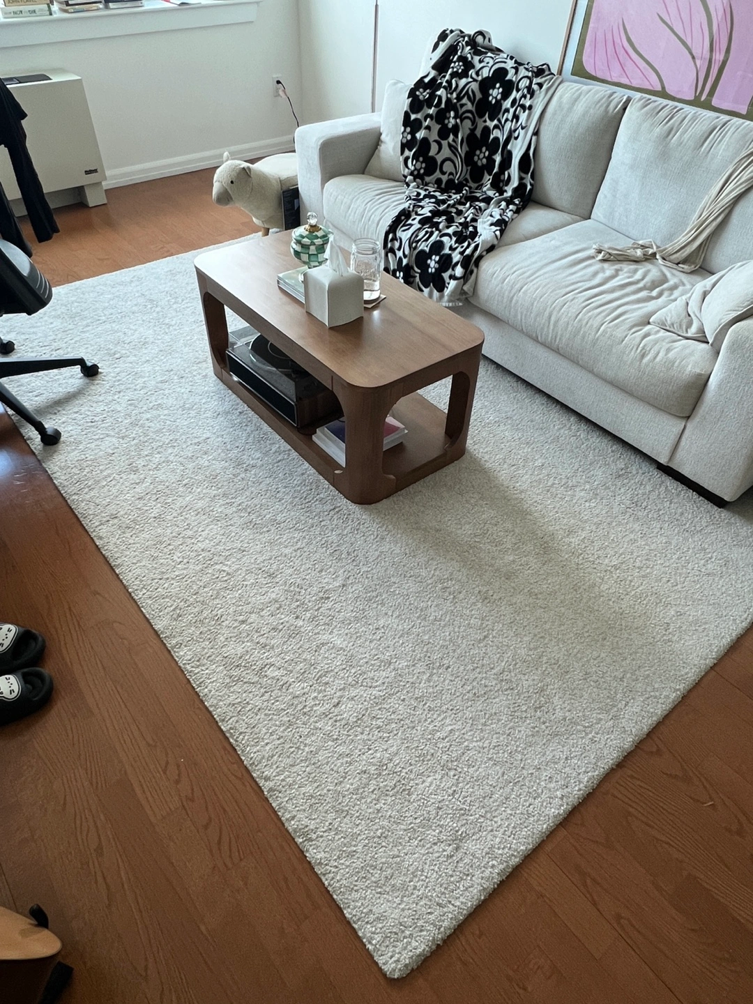 Ikea Stoense Rugs from a no-shoe, no-pet, no-smoke home. 1.5 years old and vacuumed regularly. ¾" pile. No odors.