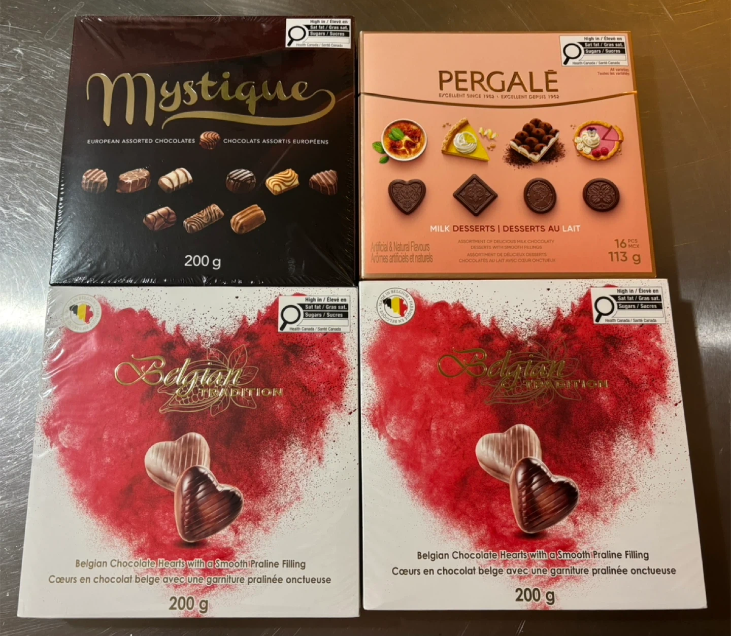 Get a selection of European assorted chocolates. The boxes include Mystique, Pergale, and Belgian Tradition.