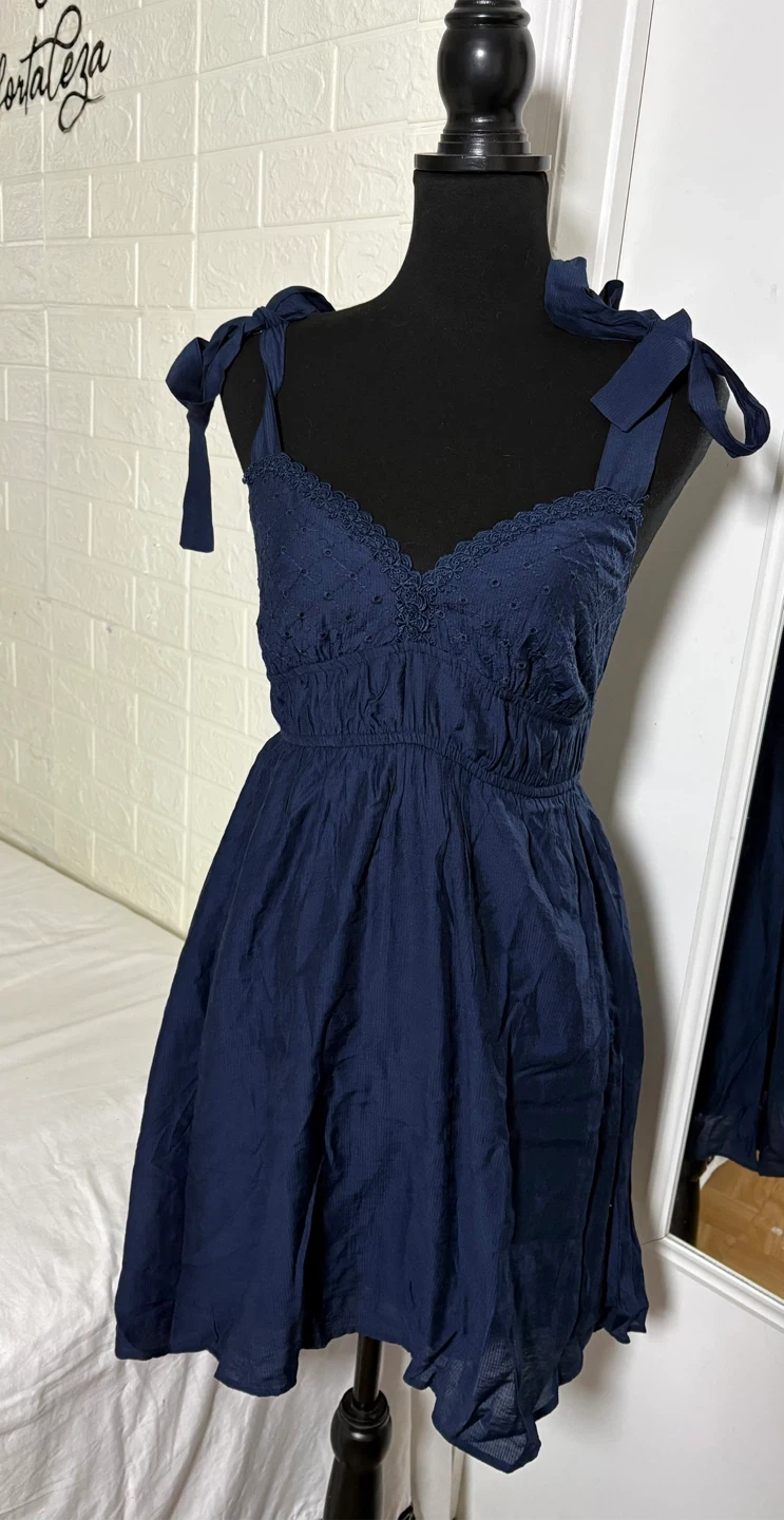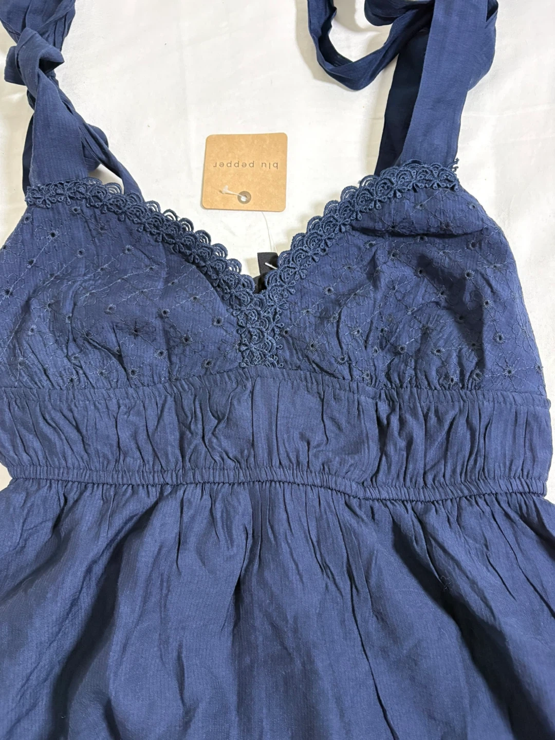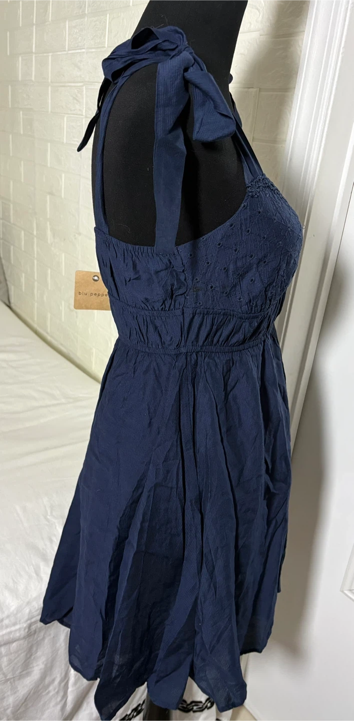 Blu Pepper Navy Eyelet Dress with Tie Straps