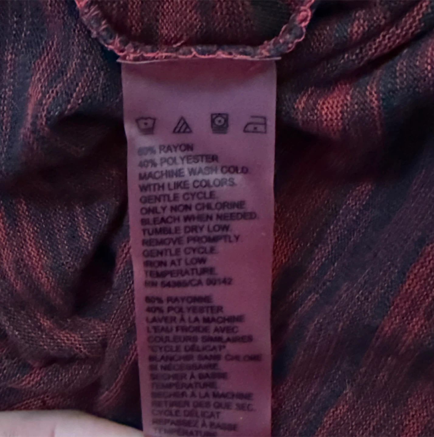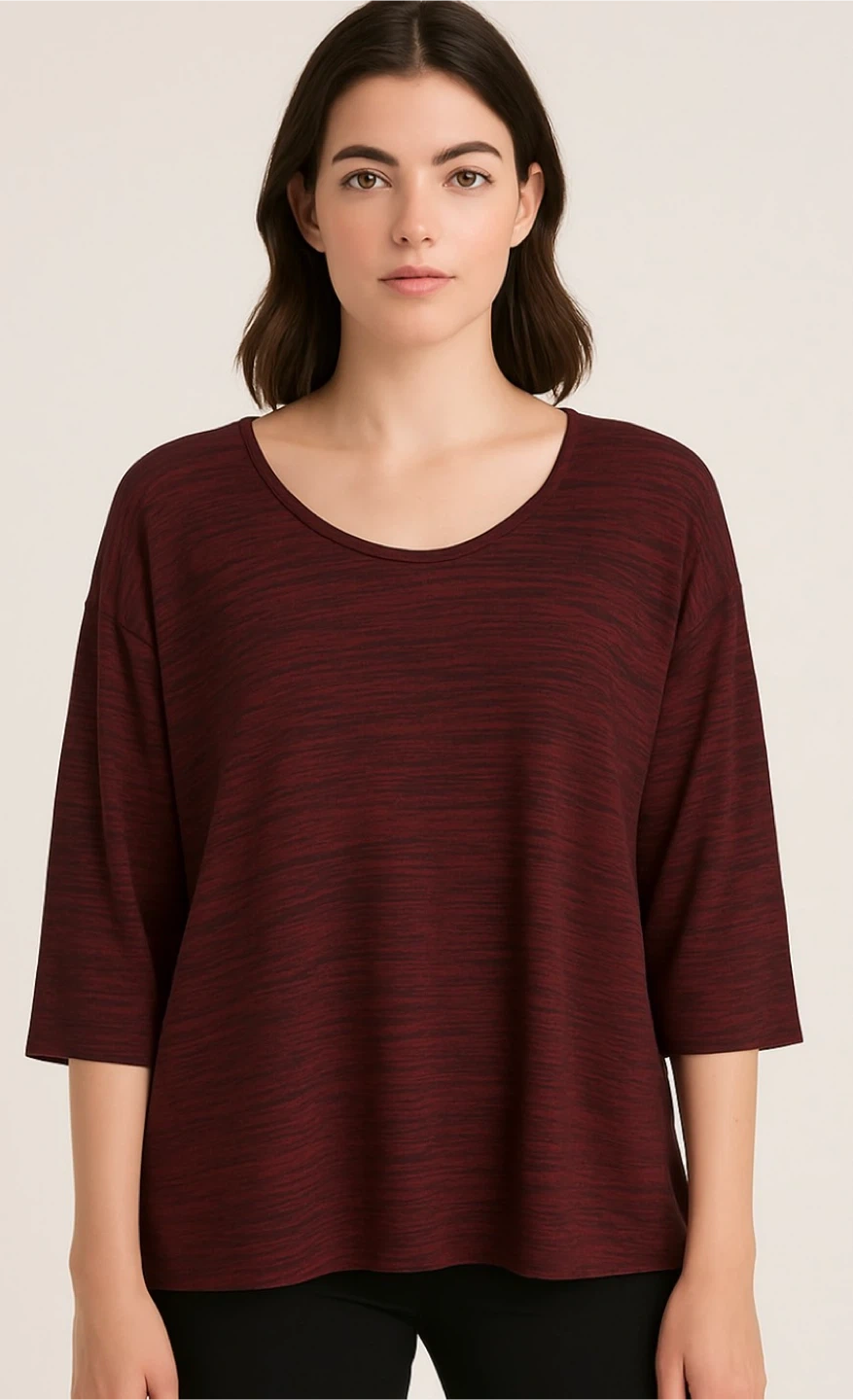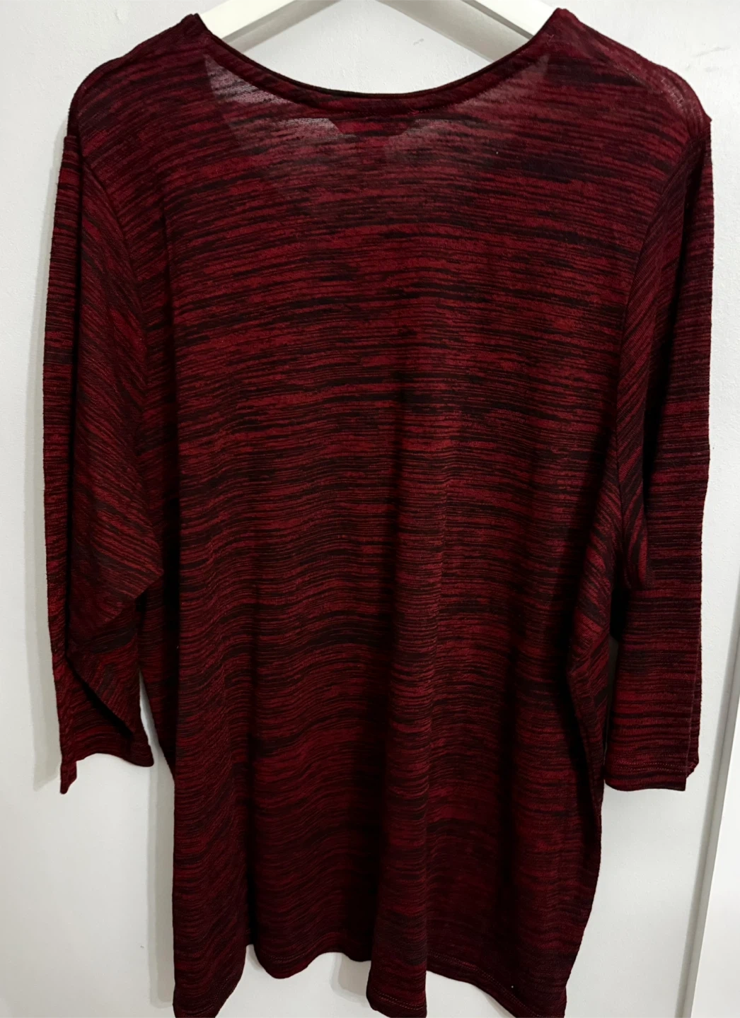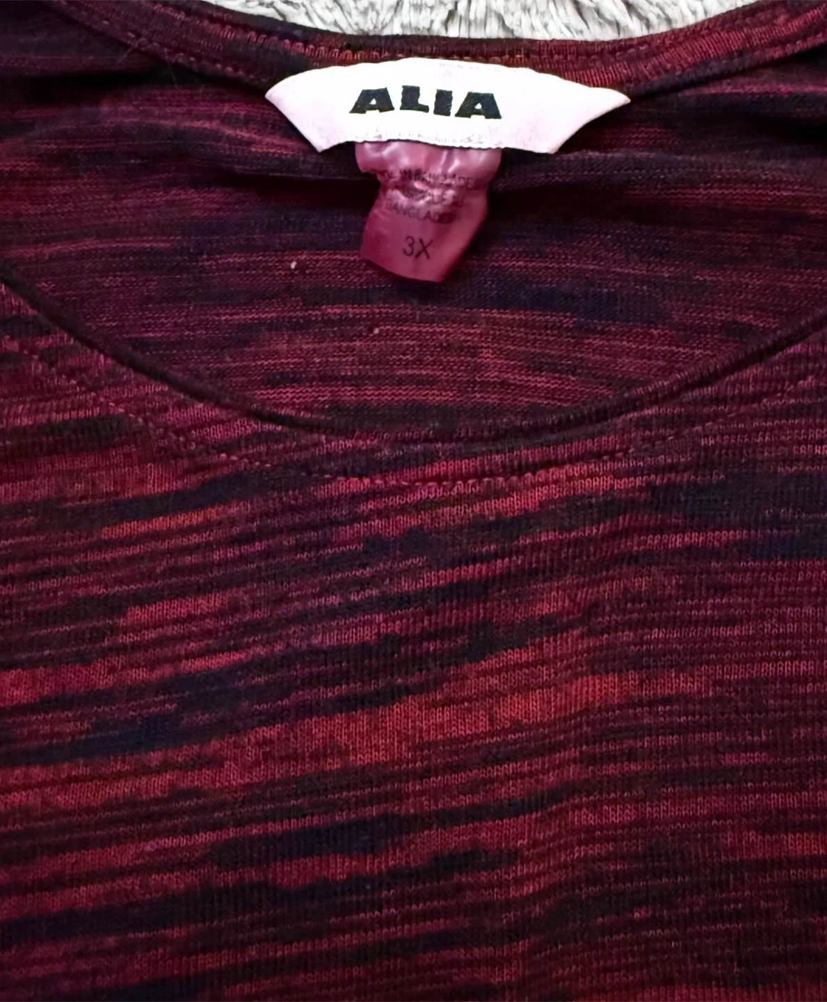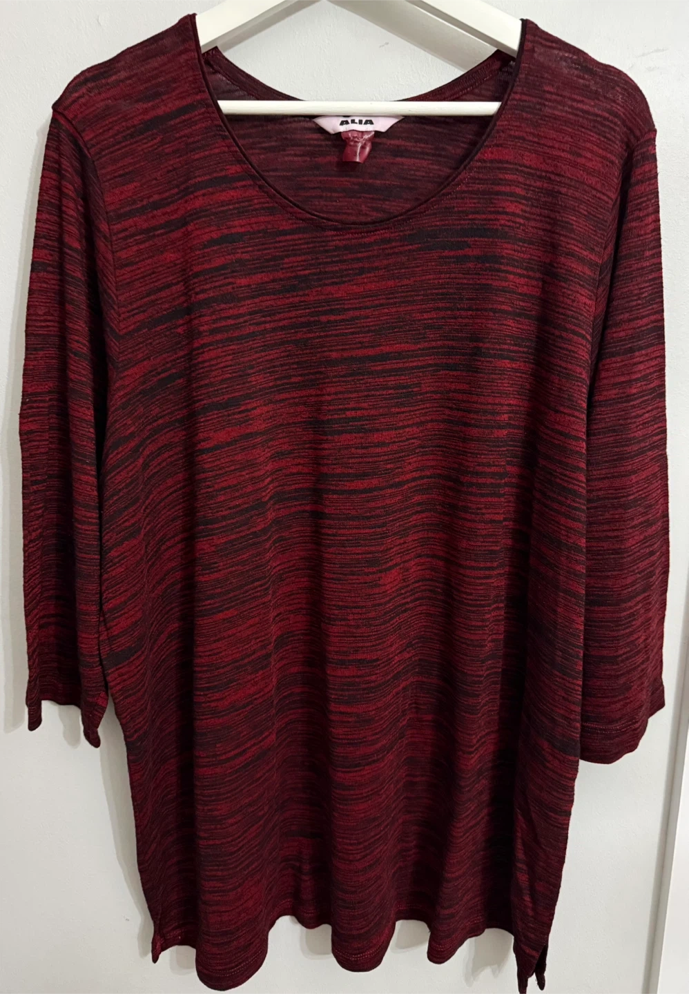 This Alia tunic top comes in a size 3X with a red and black striped pattern. It's made of 60% rayon and 40% polyester fabric. This top is great for everyday wear.