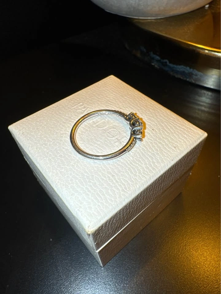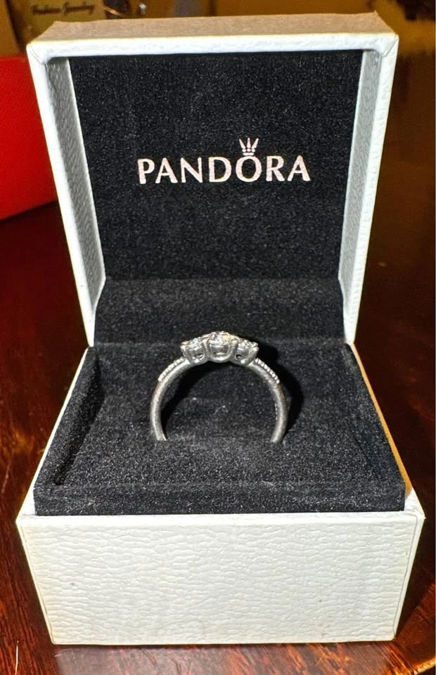 Pandora 925 Silver ring with 3 main stones and half pave (all cubic zirconia). Never worn and has been kept in the original box. Could use a polish, which can be done at a Pandora store. Currently retails for $128. Asking $75 but open to reasonable offers! Pick up in Somerset.