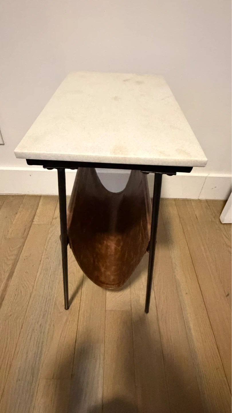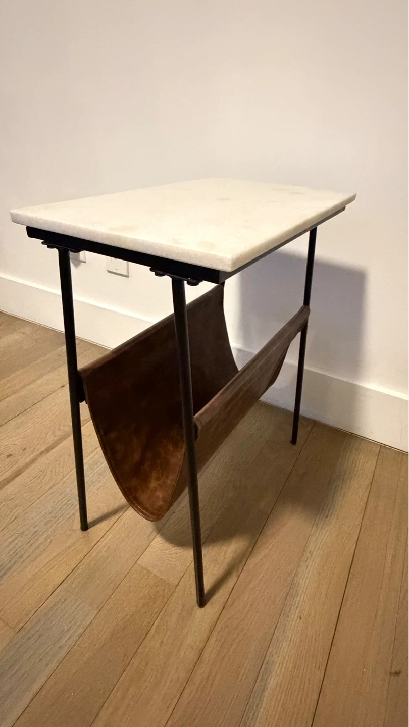 Marble Top Side Table with Leather Magazine Holder