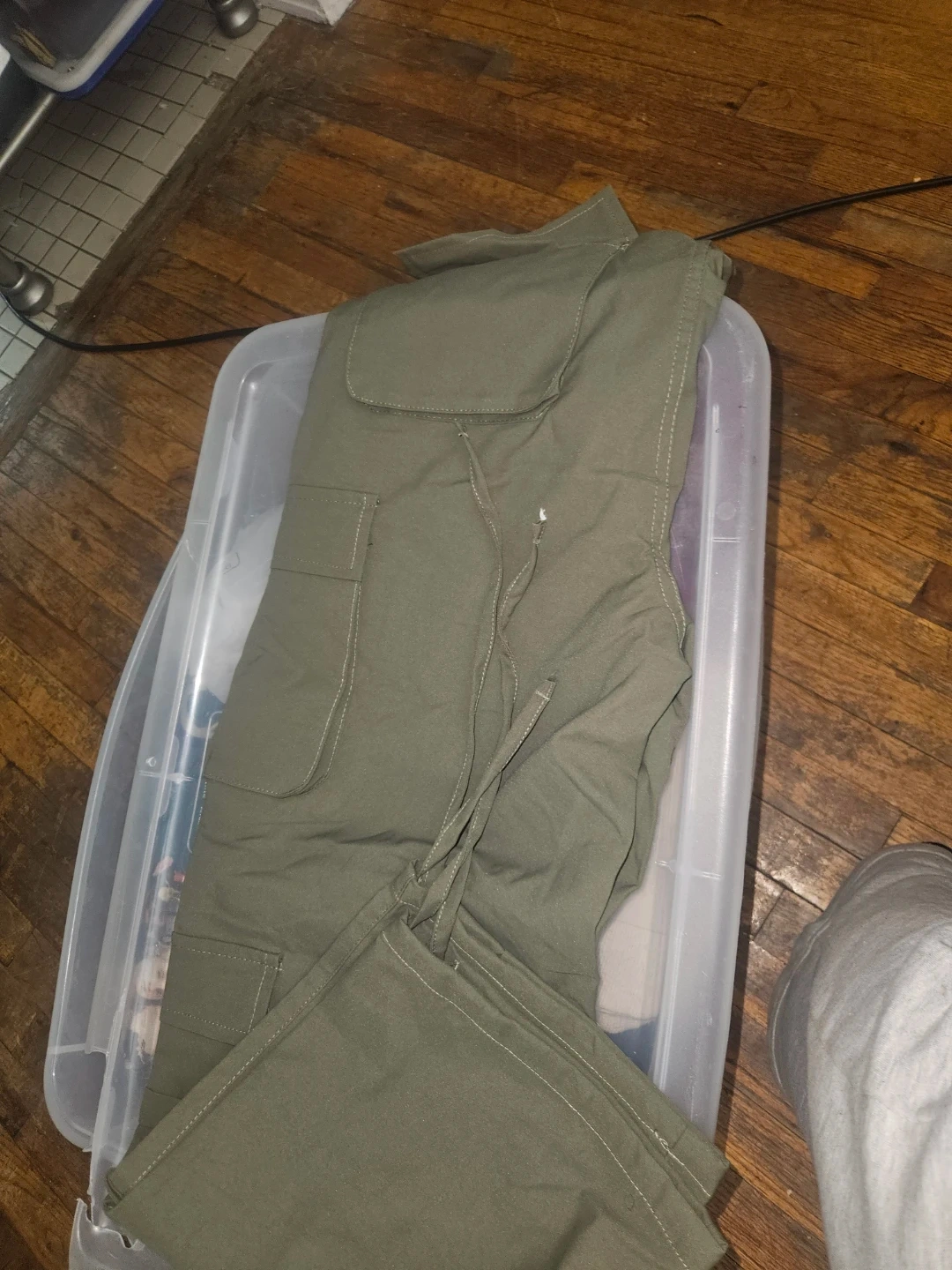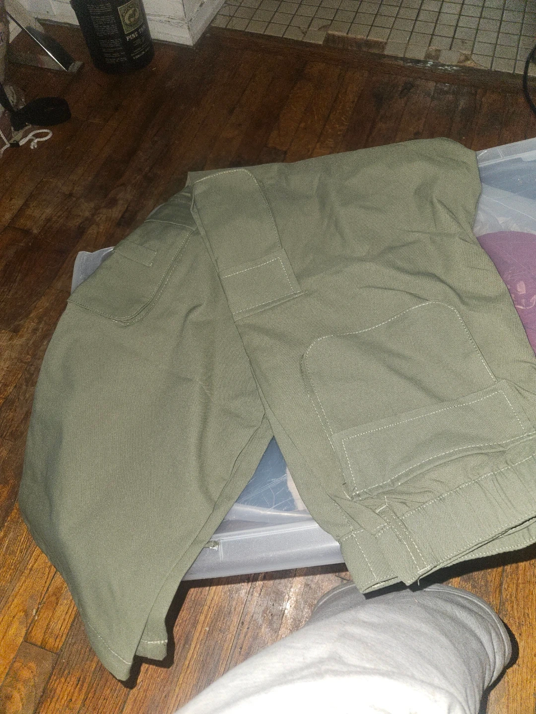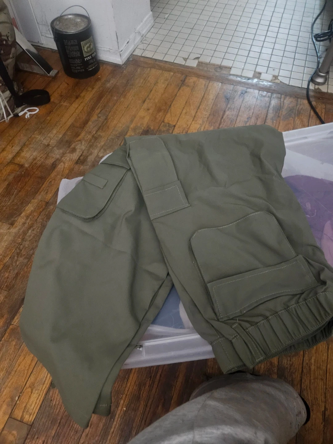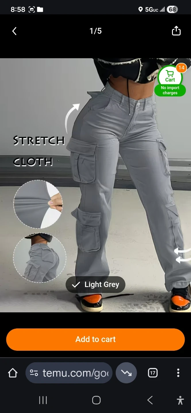These women's cargo pants are made from a stretch cloth for comfort and mobility. They feature multiple pockets for practical storage. Elastic waistband with drawstring closure.