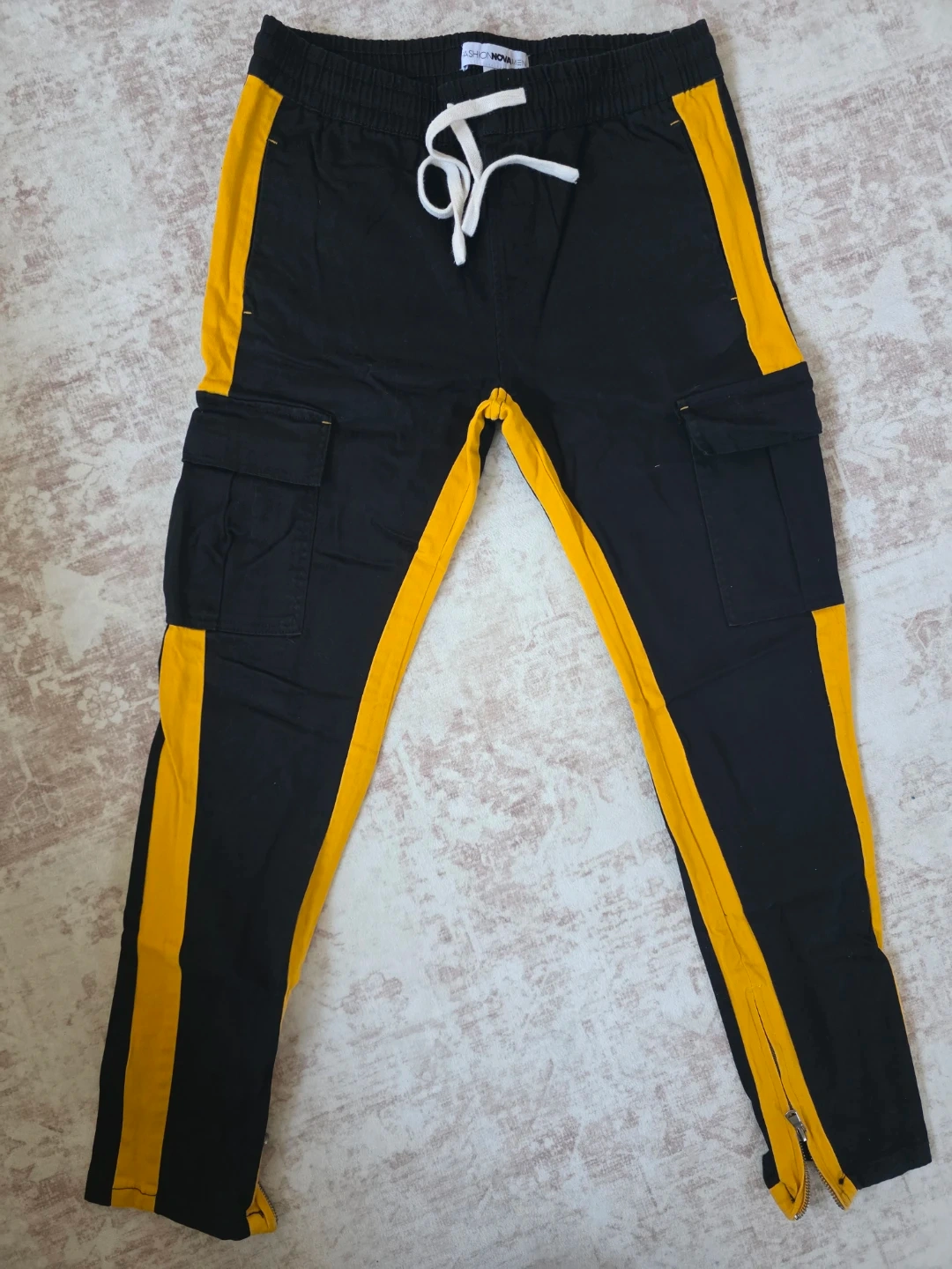 Fashion Nova Men Cargo Pants Black Yellow Size M