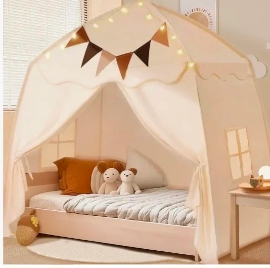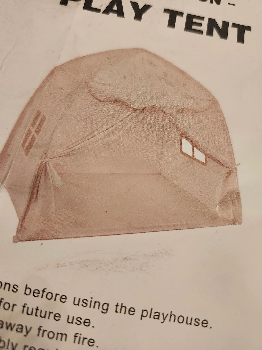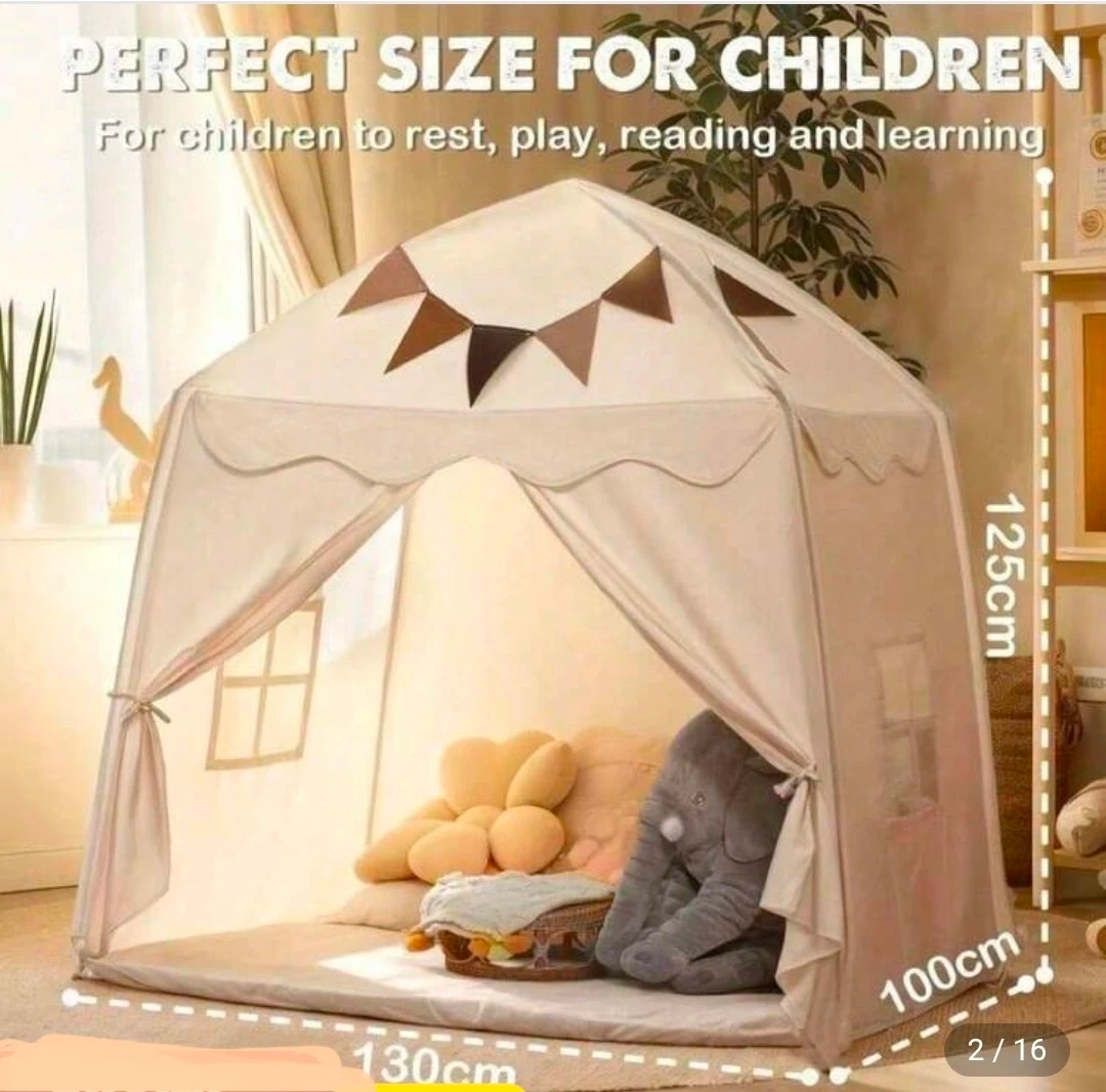 This play tent is the perfect size for children to rest, play, read, and learn! It's in NEW condition and comes with all the original components in the box. The tent measures 125cm in height, 100cm in depth, and 130cm in width.