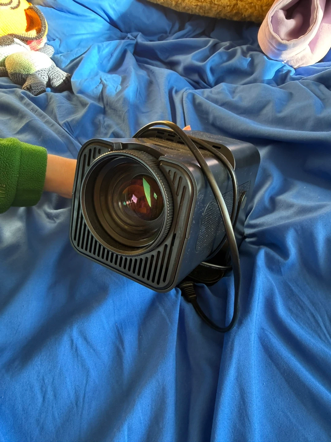 Portable LCD projector with a bright LED lamp. This unit supports power from 110V to 240V. It comes with a remote control for easy operation. Great for movie nights or presentations!
