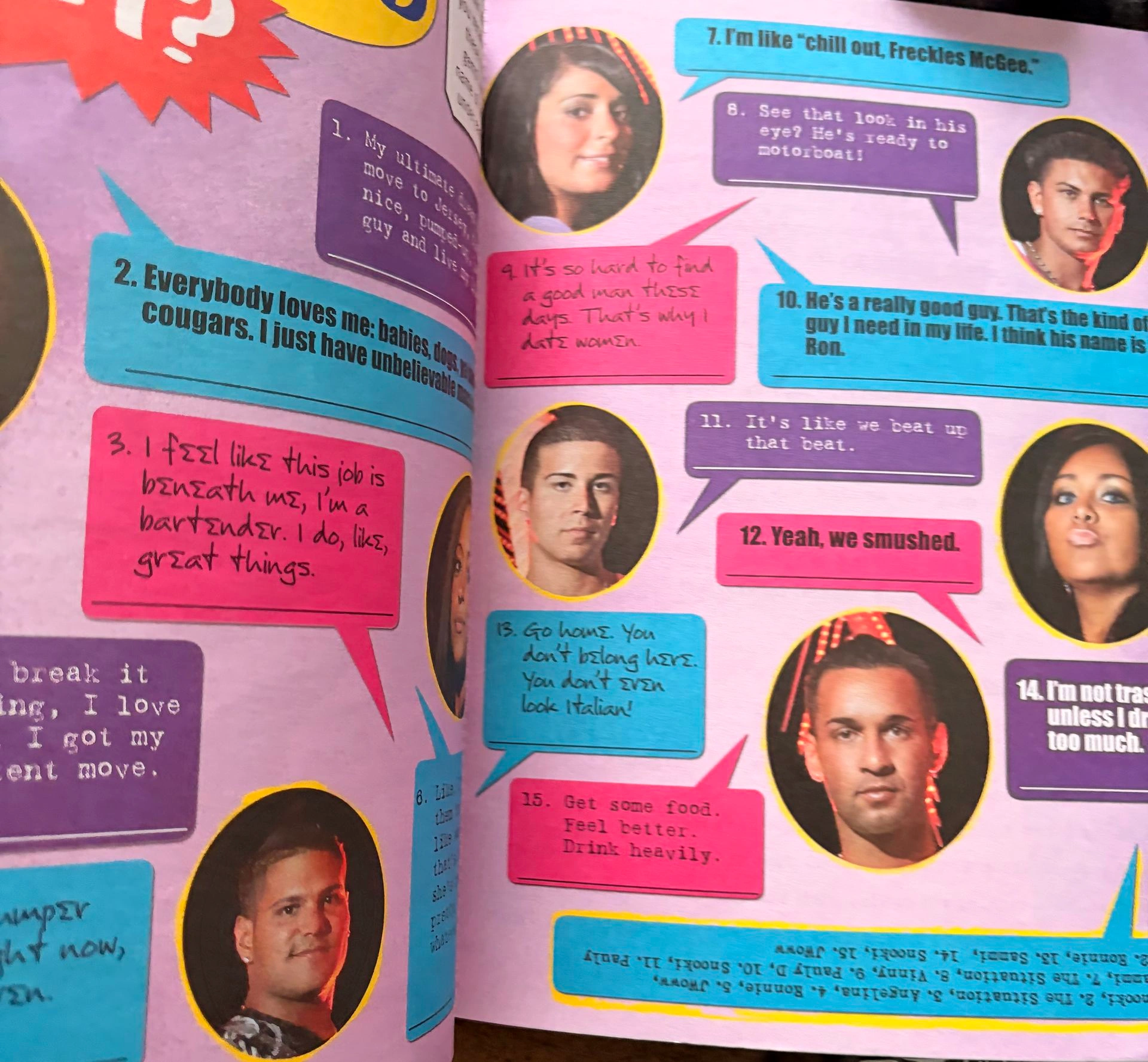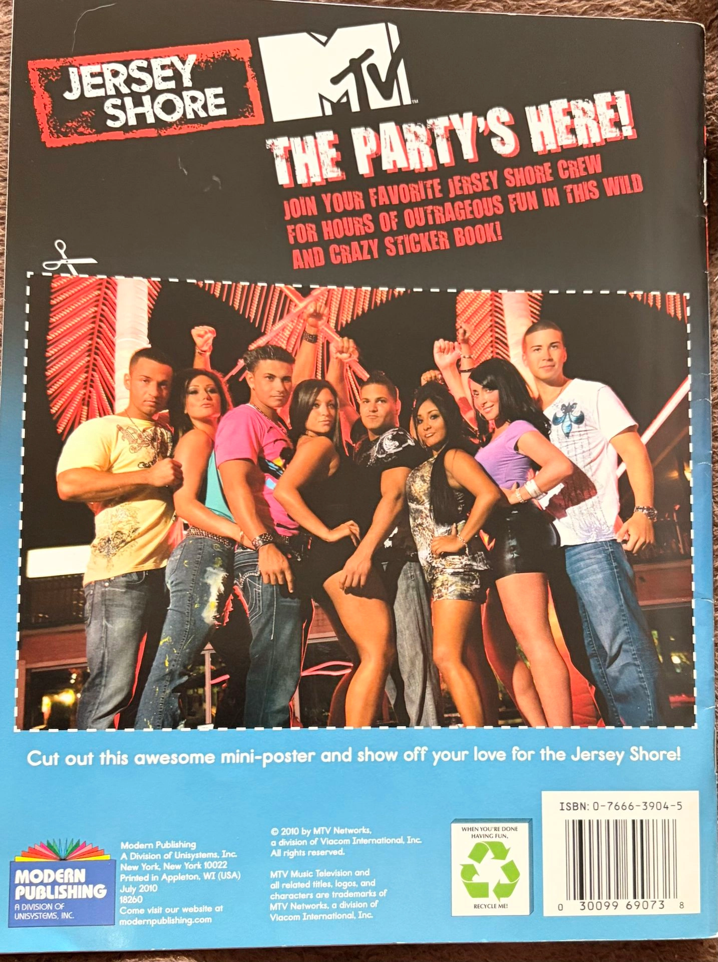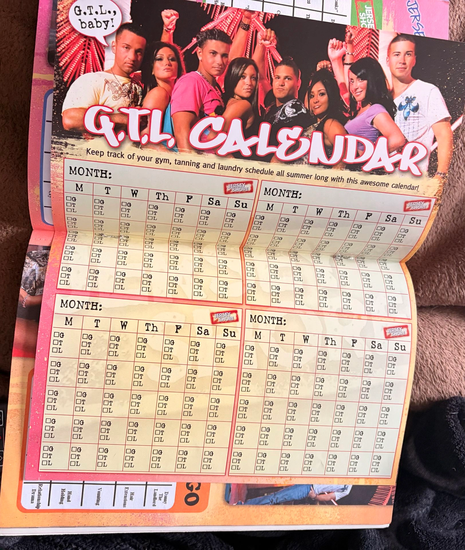 Brand new, never used MTV Jersey Shore Sticker Activity Book. Perfect for fans or collectors! Includes all stickers intact and the G.T.L. calendar centerfold. This is a full-color sticker activity book based on the popular MTV reality show Jersey Shore, featuring cast members like Nicole "Snooki" Polizzi, Jenni "JWOWW" Farley, and Mike "The Situation" Sorrentino. Includes what the cover describes as "tons of fist-pumping fun!" and a G.T.L. calendar.