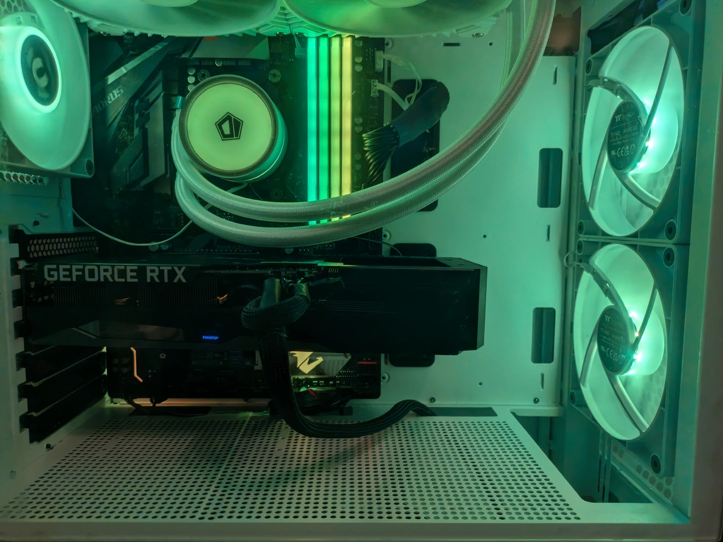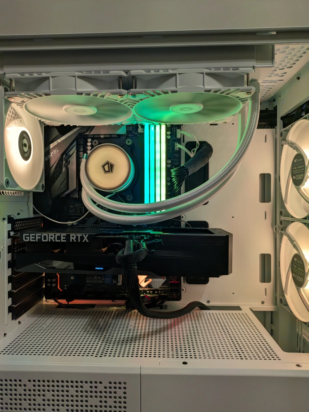 Fans — 3x 140mm Thermaltake RGB (2x Case front, 1x back) plus 2x ID-COOLING AIO top
