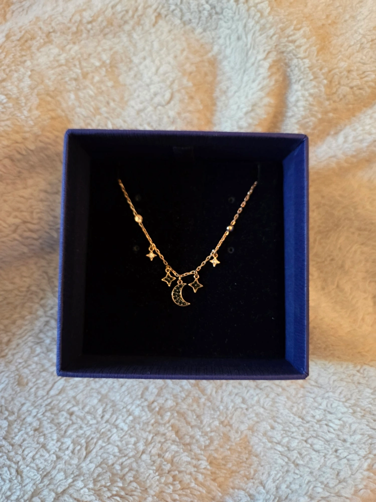 Rose gold plated necklace with a crescent moon and stars pendant. Comes in the original box.