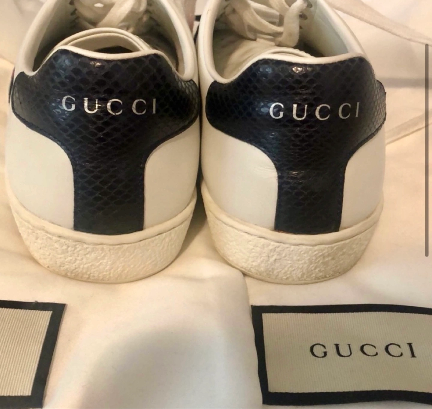 These Gucci unisex sneakers are in excellent condition as they were only worn for a couple hours. They are a 36.5 but run a little big. I would say they would fit a 7.5 women’s or 6 men’s. I am only selling because I need a smaller size. They come with box and dust bags.