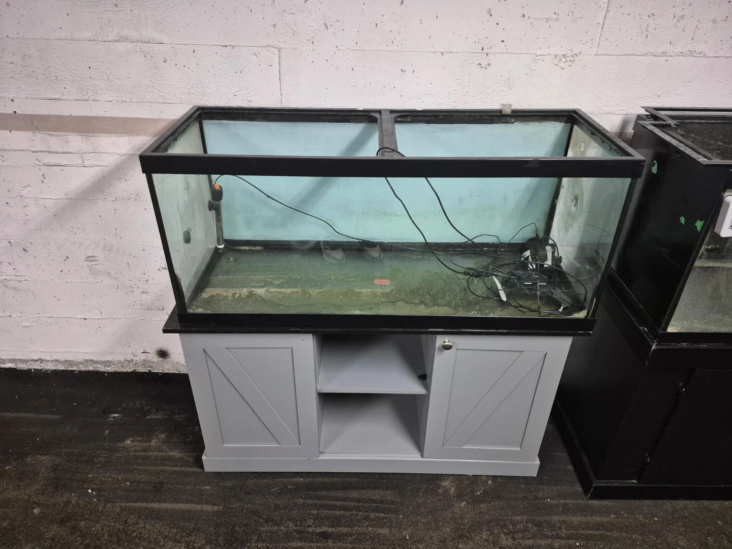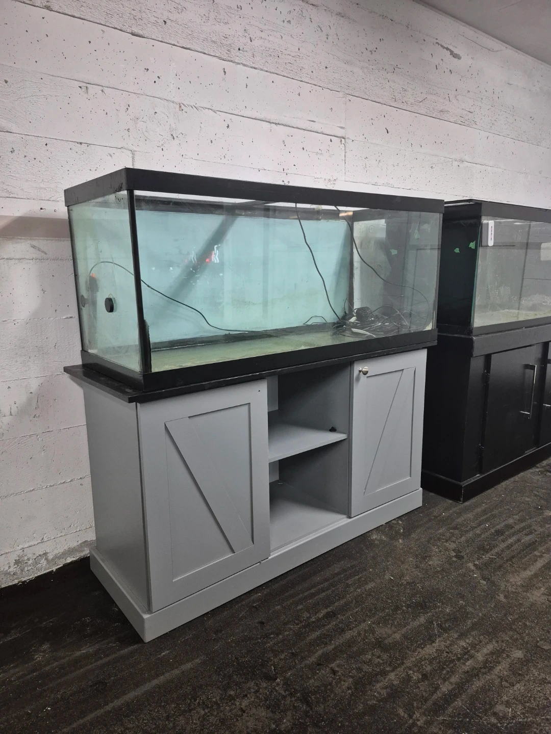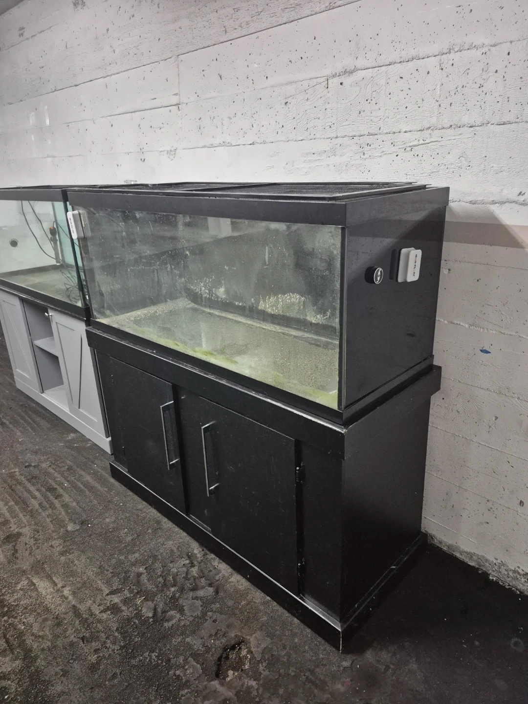 This is a large glass aquarium tank that comes with a black stand or a 2nd tank that comes on a grey stand. 200 each or both for 300.