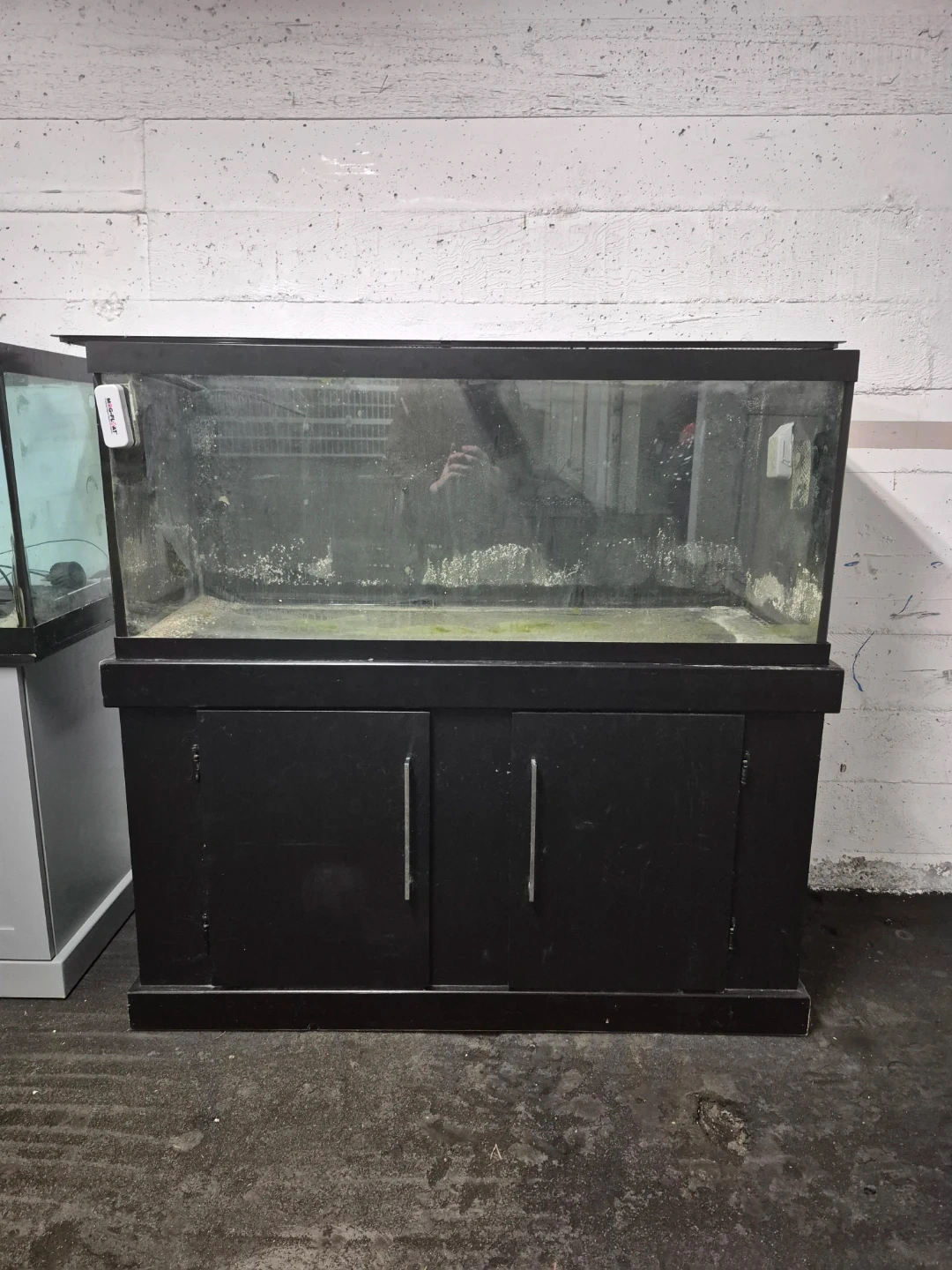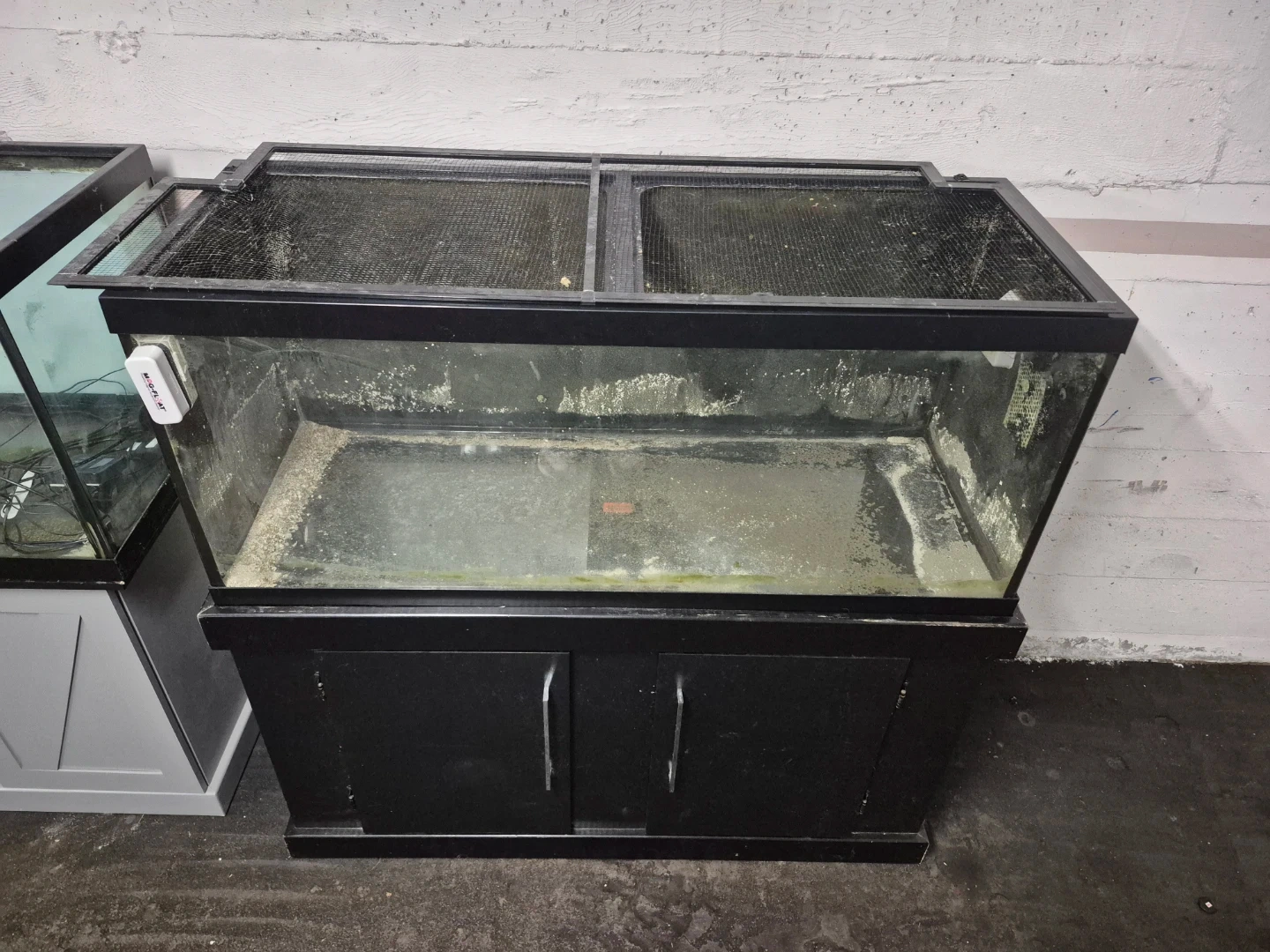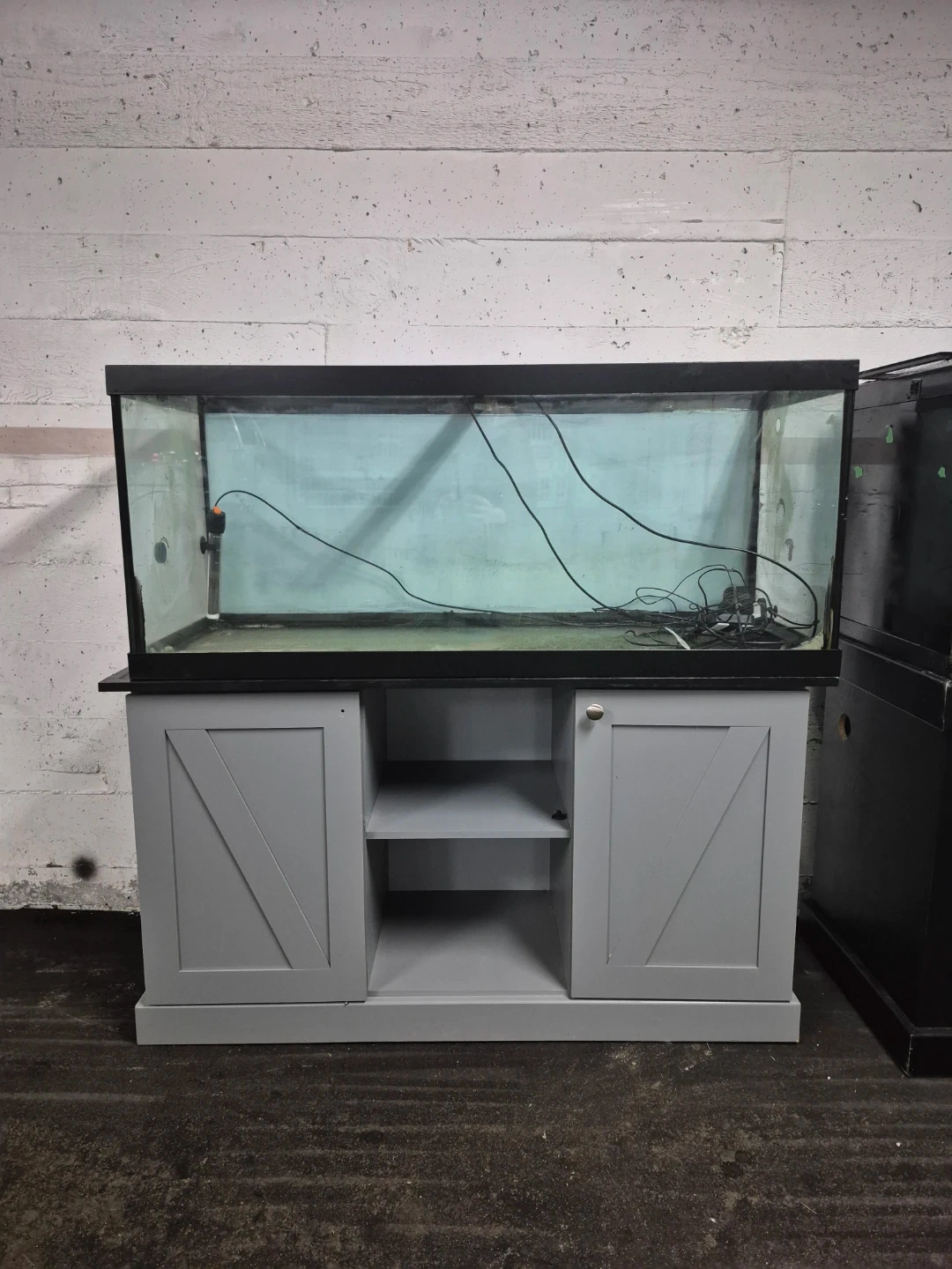 This is a large glass aquarium tank that comes with a black stand or a 2nd tank that comes on a grey stand. 200 each or both for 300.