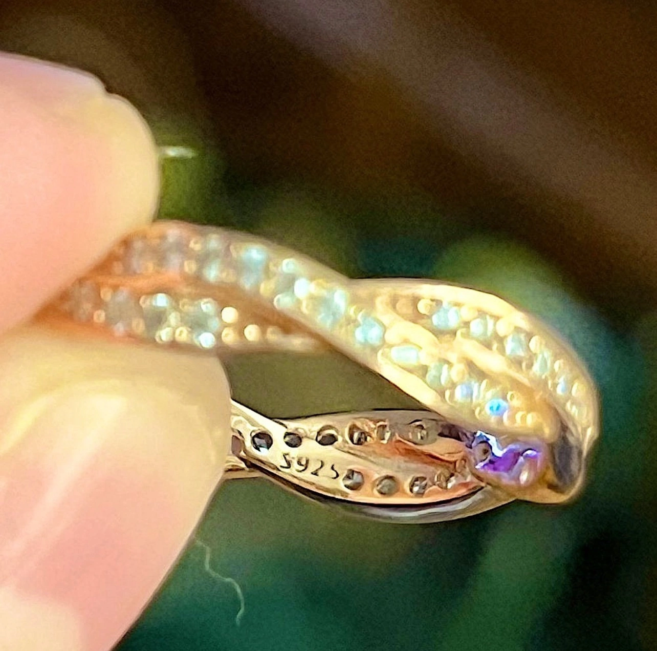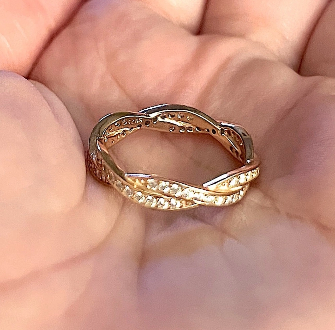 Rose Gold Sterling Silver Entwined Ring with Cubic Zirconia