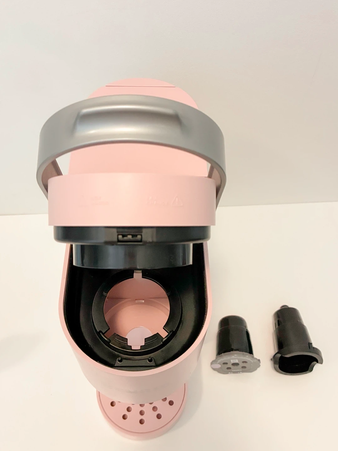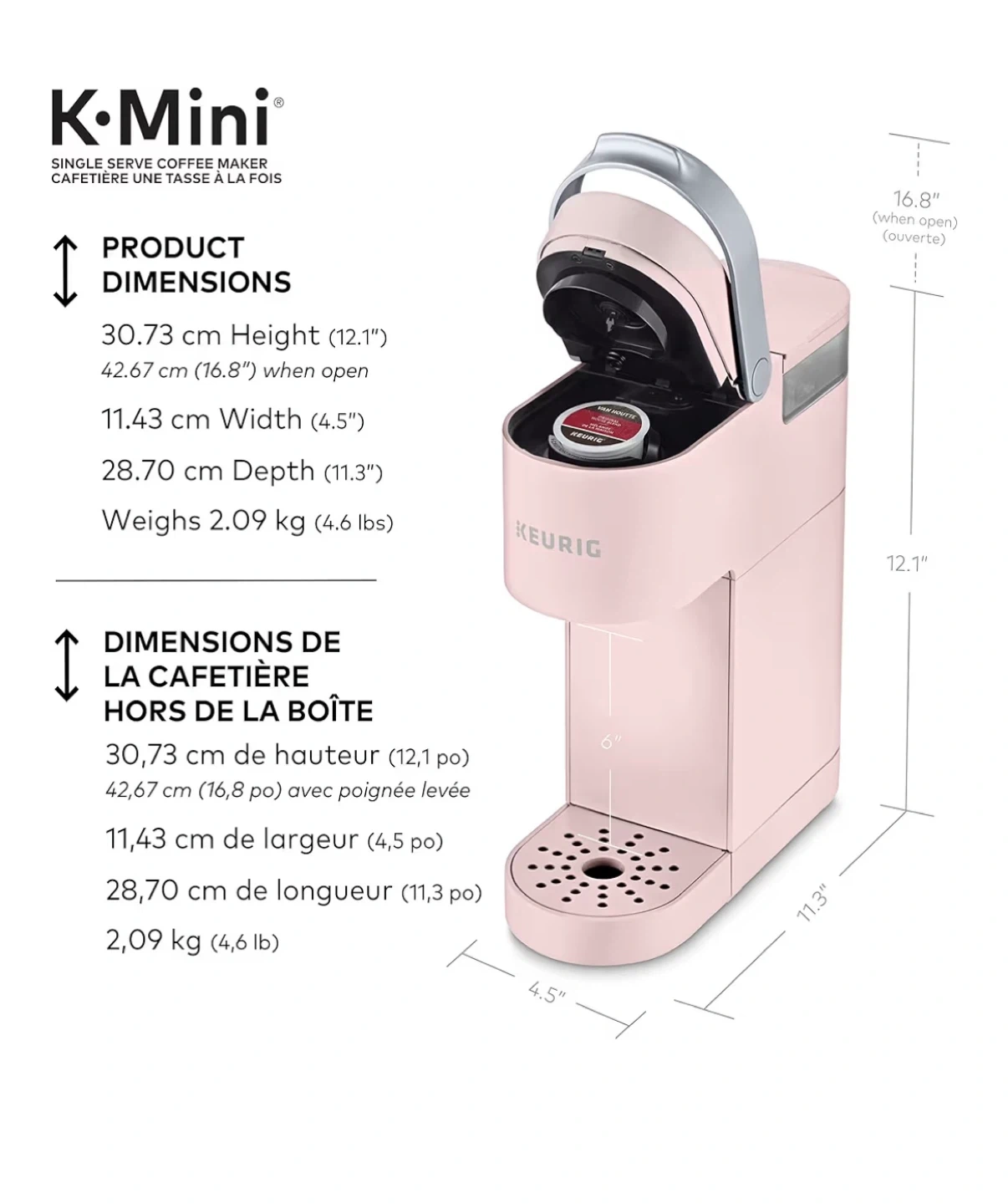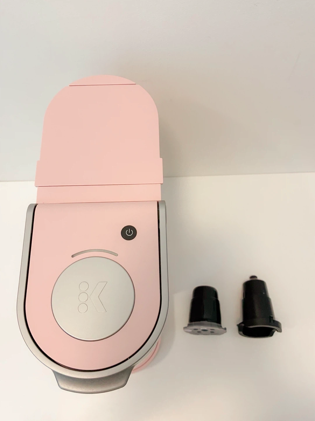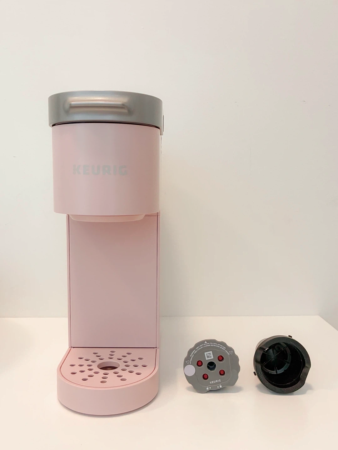 Selling Keurig K-Mini single-serve coffee maker in a light pink colour. It's a compact machine that brews coffee one cup at a time, perfect for small spaces. It’s like new condition and comes with K-cup pod (never used) and K-Cup Universal Reusable Coffee Filter (for ground coffee), which is additional accessory selling for $19.99.