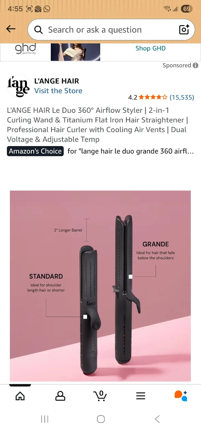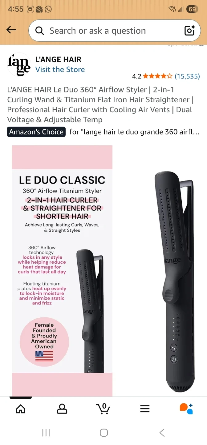 This is the L'ANGE HAIR Le Duo Grande 360° Airflow Styler. It's a 2-in-1 curling wand and titanium flat iron hair straightener. It features dual voltage and adjustable temperature settings.