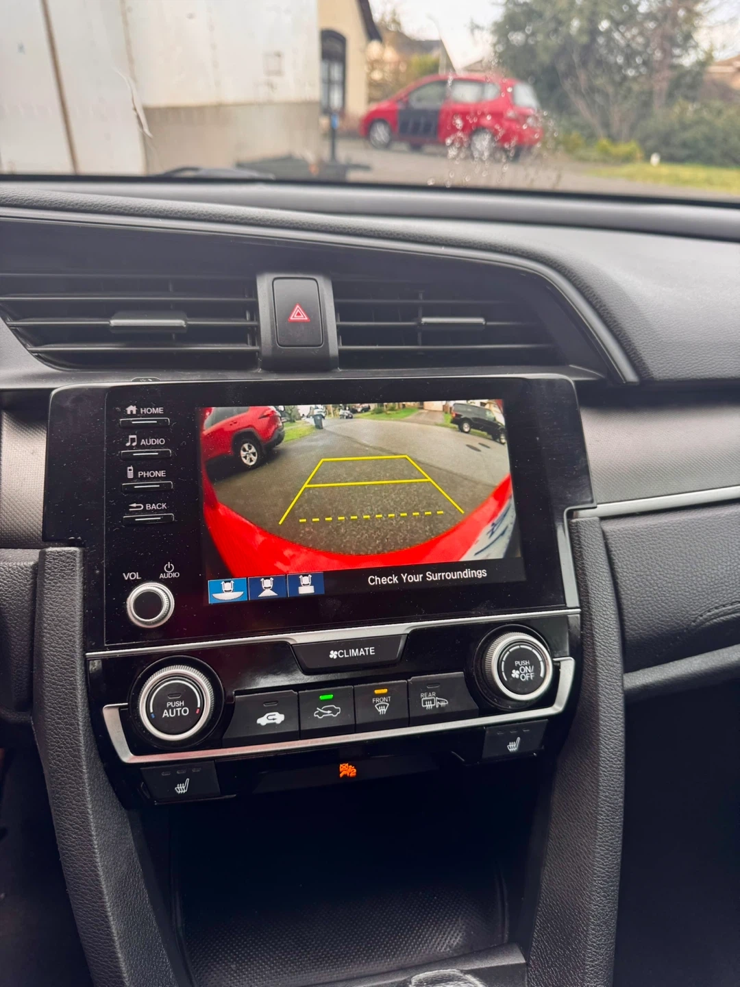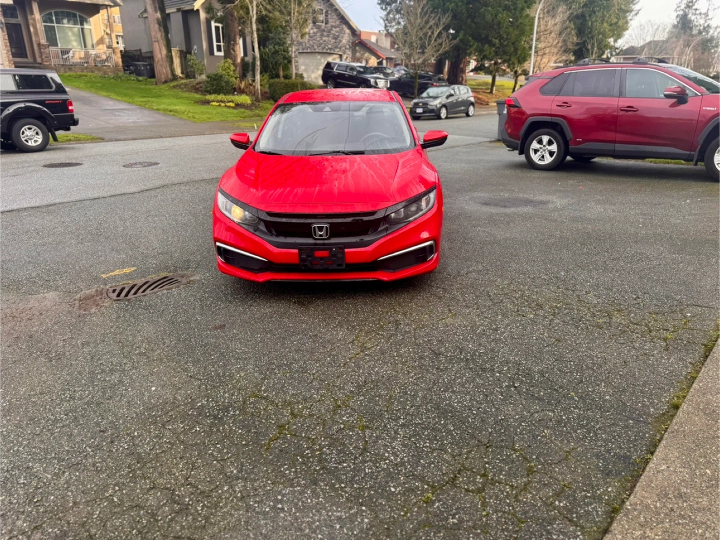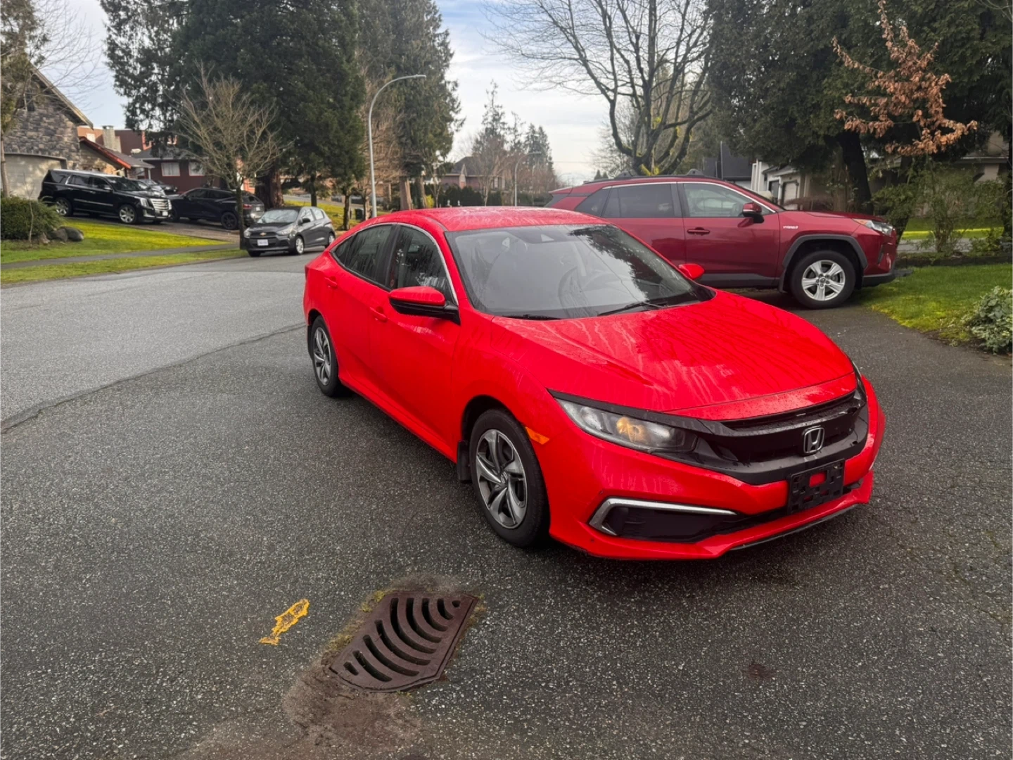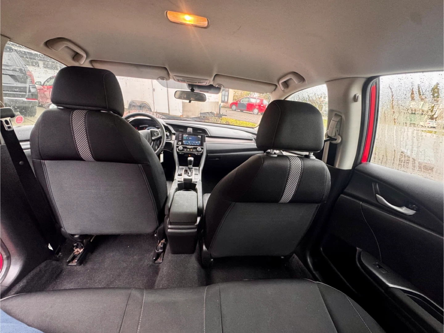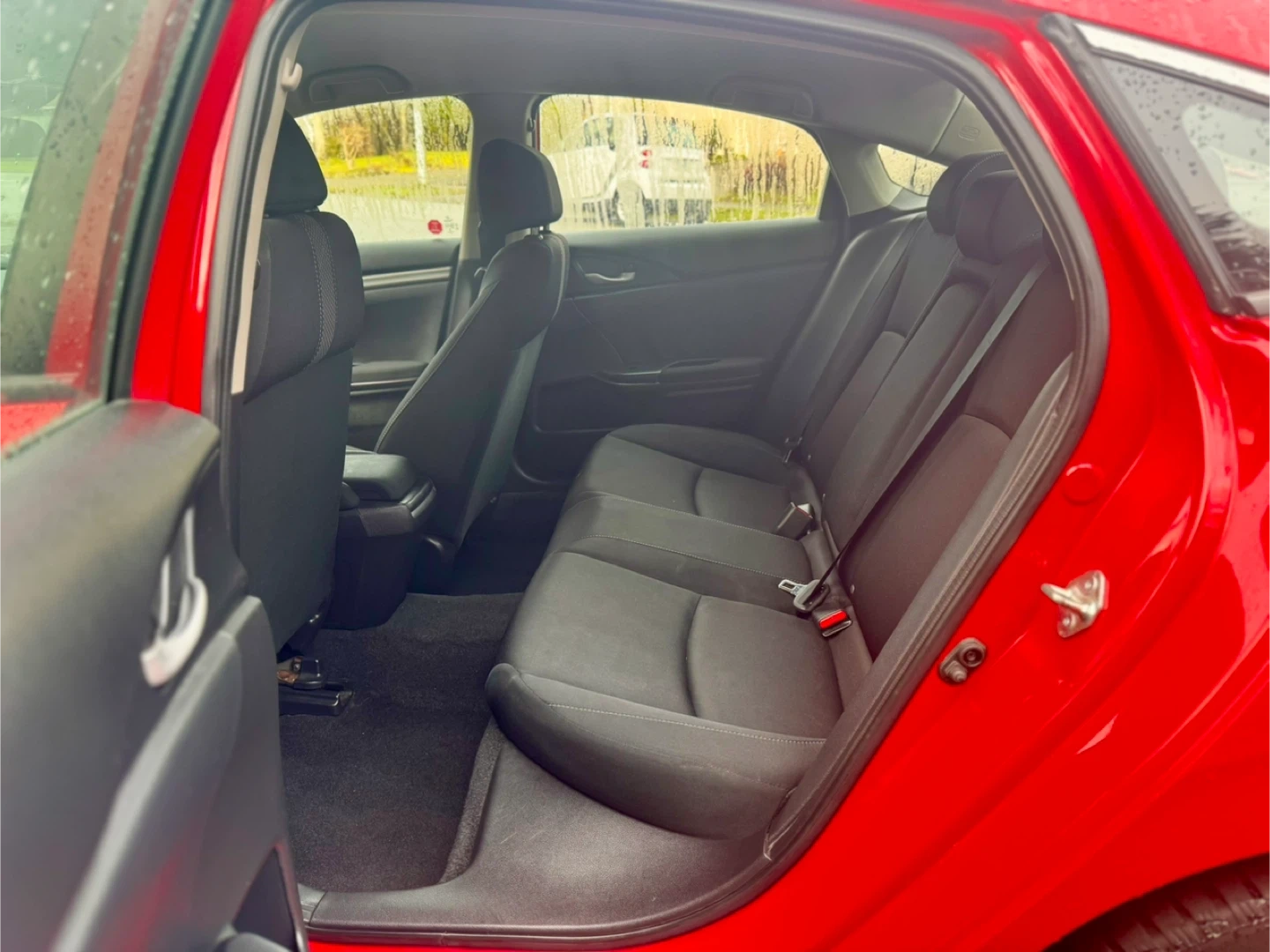 Reliable, easy-to-drive, and affordable – a perfect first car for new drivers! This is a red Honda Civic sedan. It's a compact car with a comfortable interior. The exterior is a vibrant red.