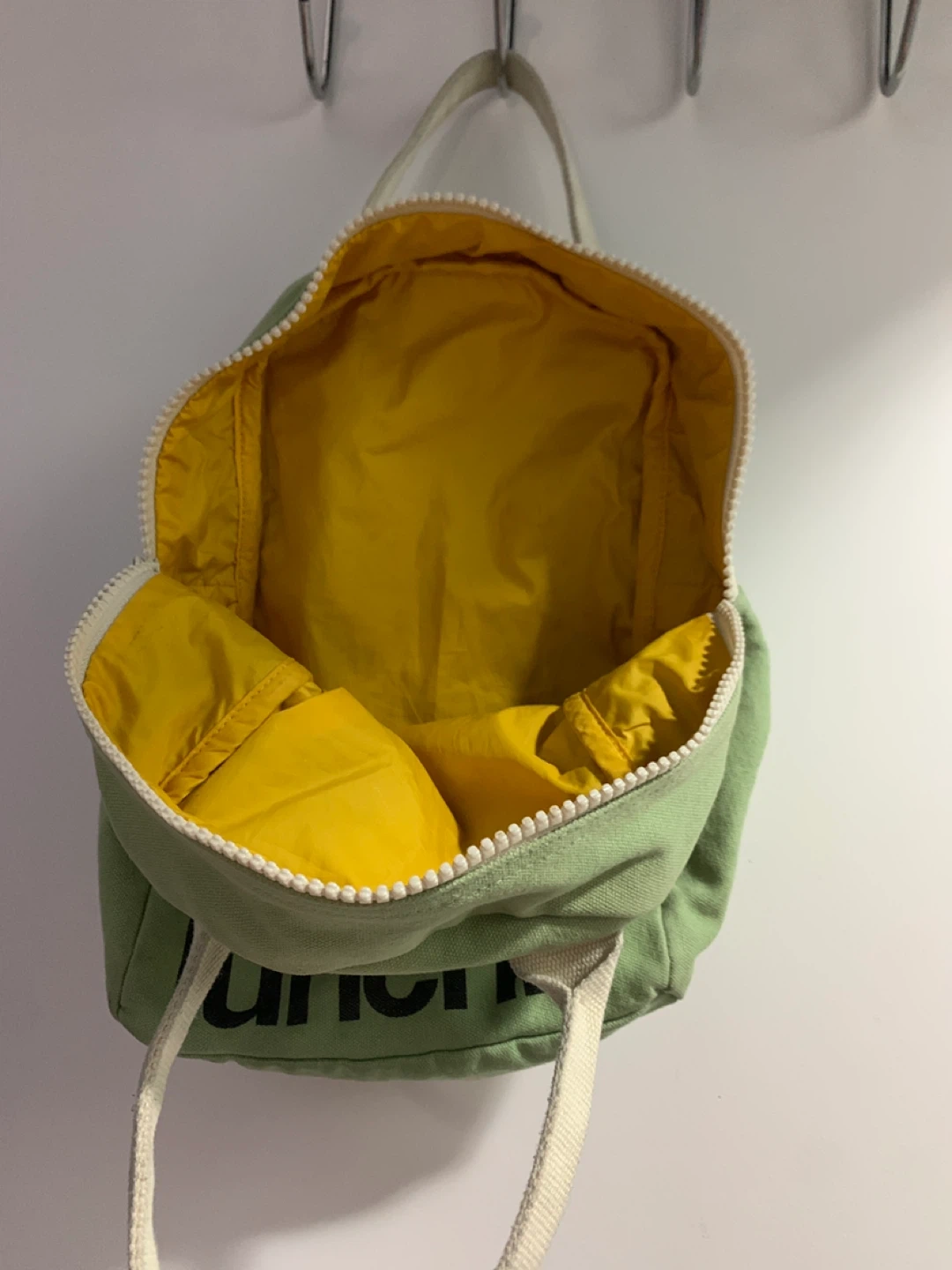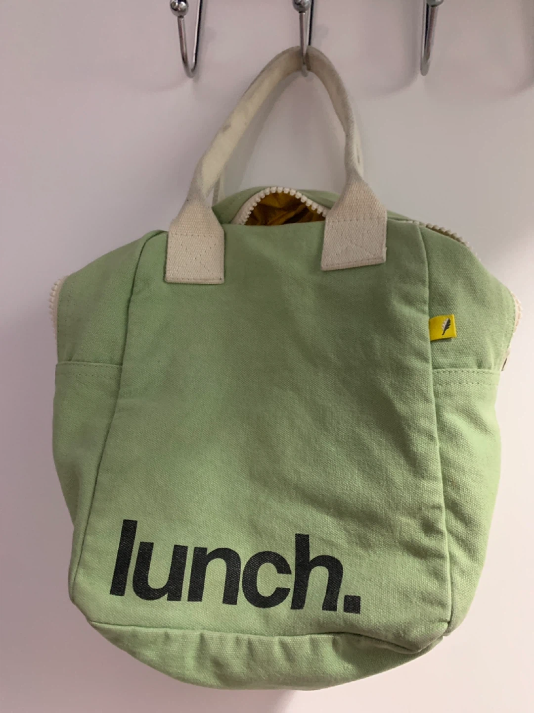 This is a cute green lunch bag from SoYoung! It's in great condition and ready for a new home. Perfect for school, work, or picnics. The interior is yellow and easy to clean