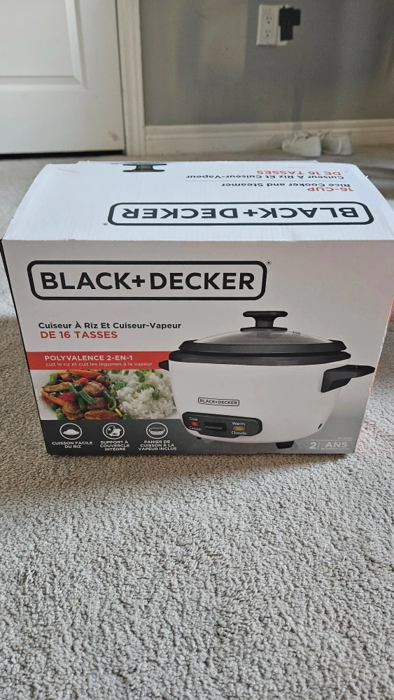 Selling a brand new Black+Decker 16-cup rice cooker and steamer! It is a polyvalence 2-in-1 appliance. This comes with the box and all components. Perfect for making delicious rice and steamed vegetables