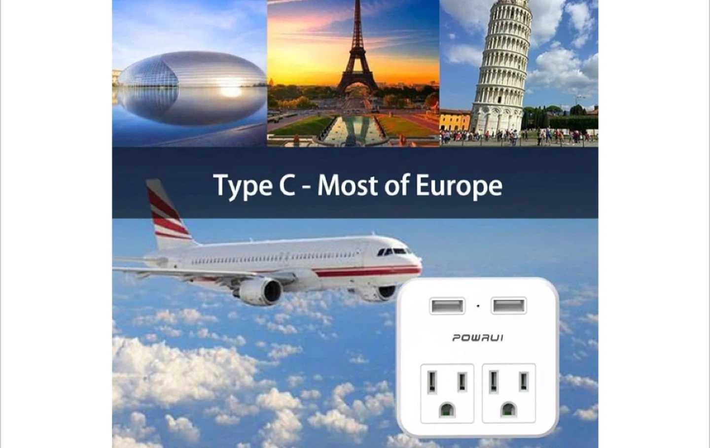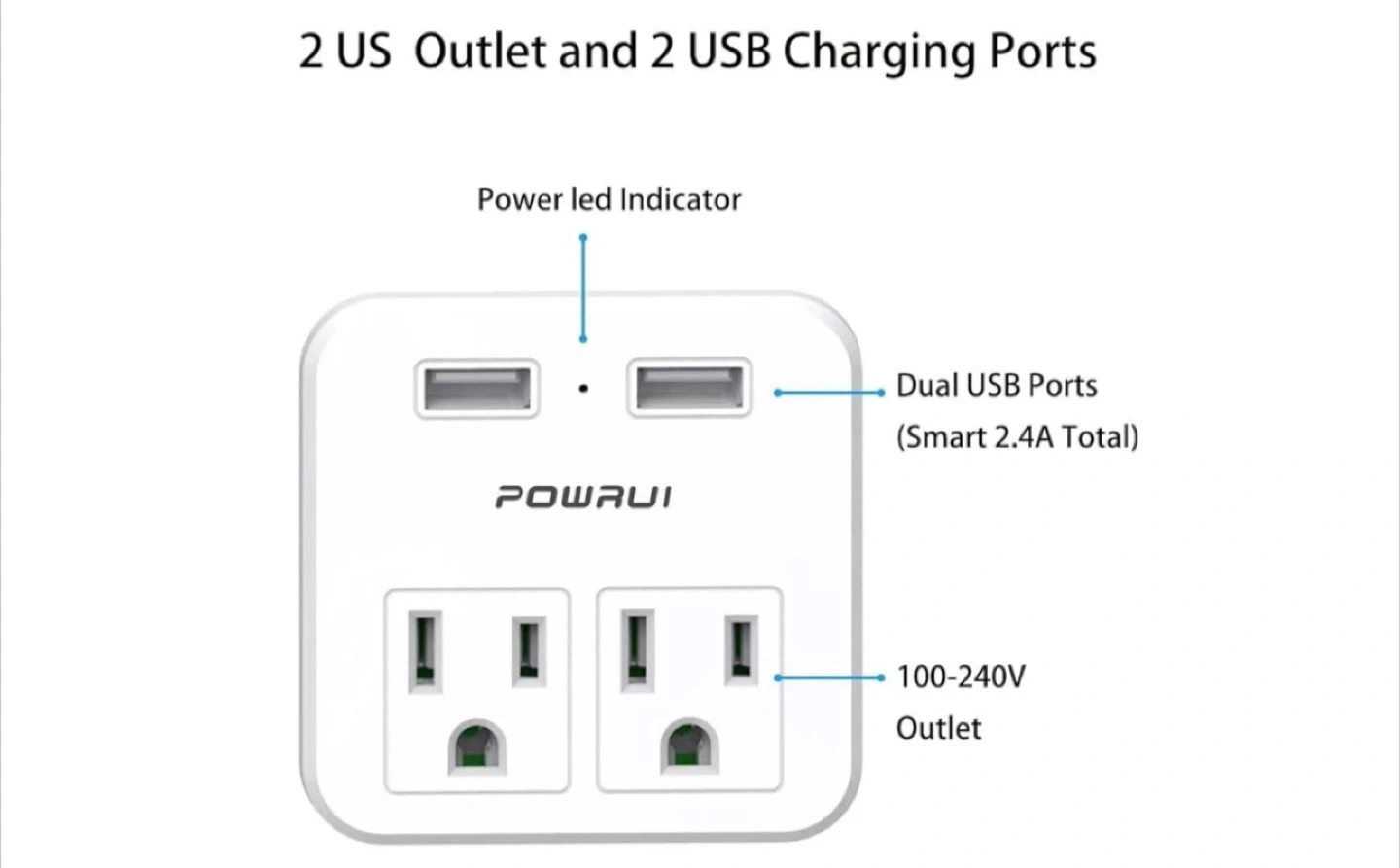 POWRUI 2-Outlet and 2-USB Travel Adapter