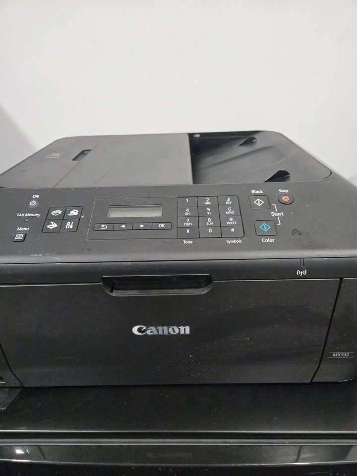 The Canon PIXMA MX532 multifunction printer—capable of printing, scanning, copying, and faxing with Wi-Fi/mobile support (via PIXMA Printing Solutions, AirPrint, Google Cloud Print), a 30-sheet automatic document feeder, automatic duplex printing, and crisp 4800 × 1200 dpi output—is fully functional and has served well. Let me know if you're interested!