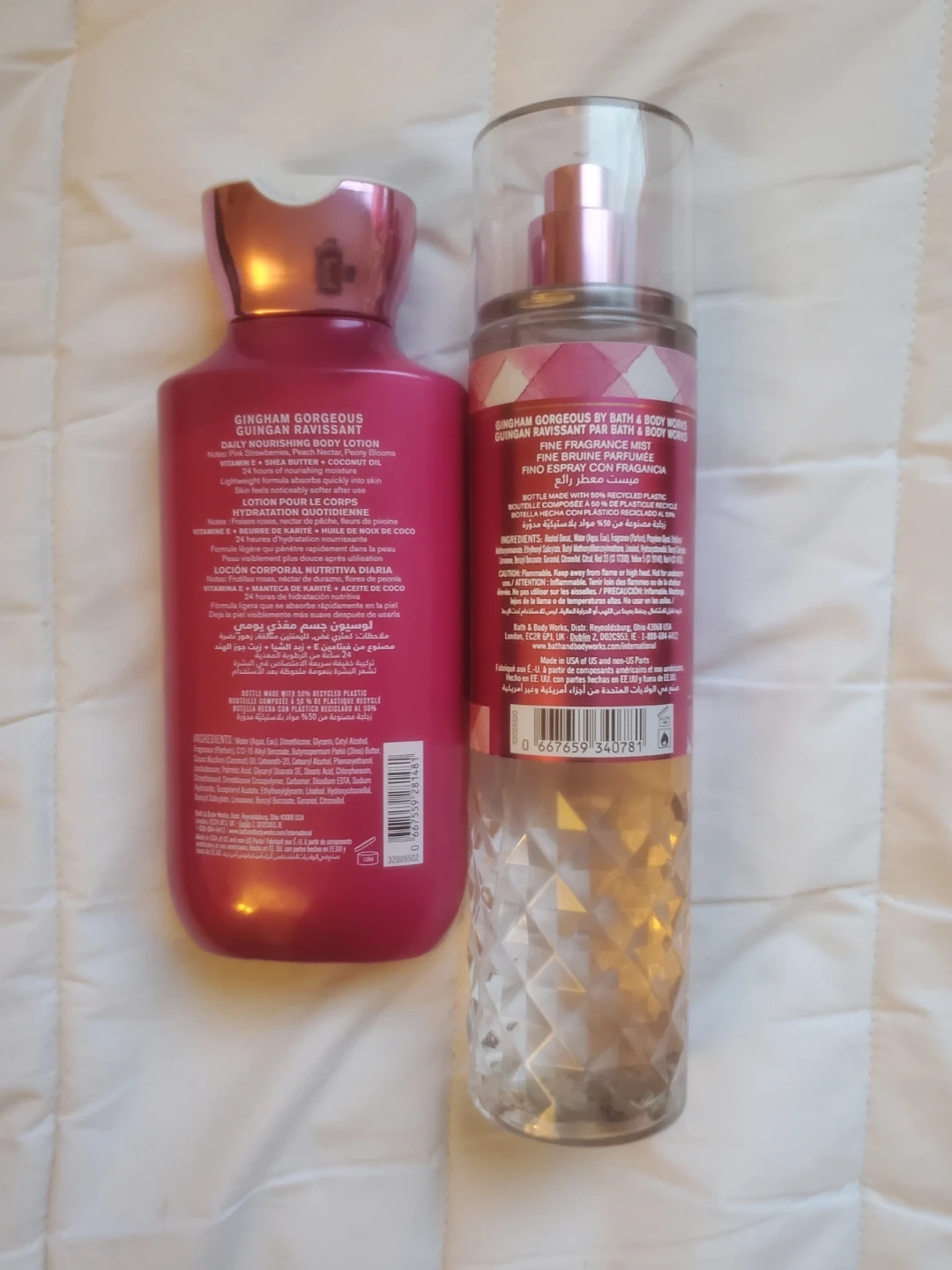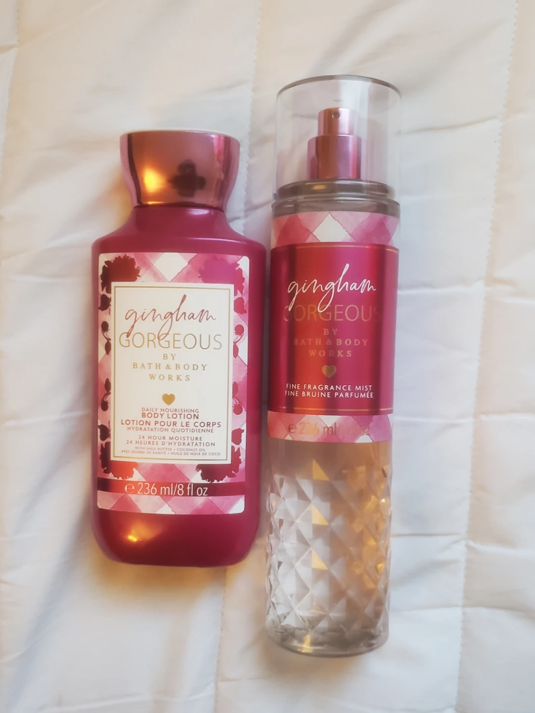 Gingham Gorgeous fragrance mist and lotion set, never used. Floral and sweet scent, swipe to last slide to see the specific notes.