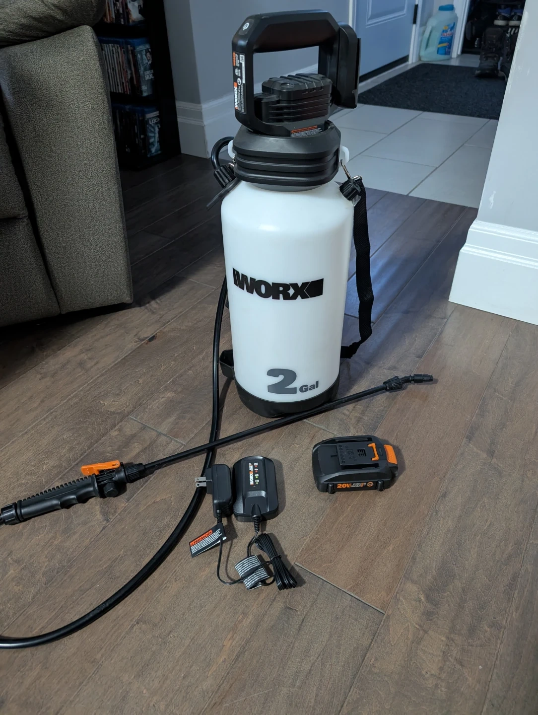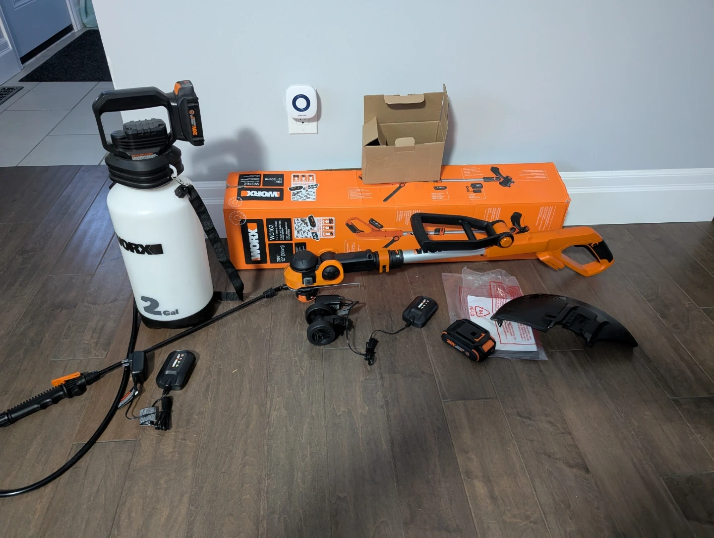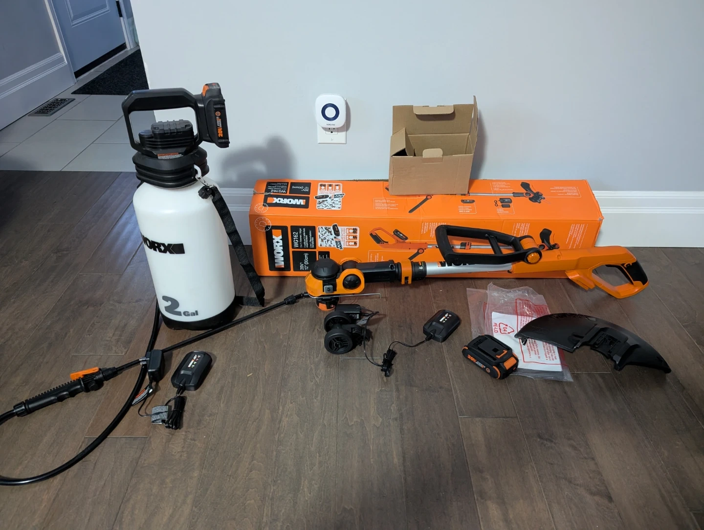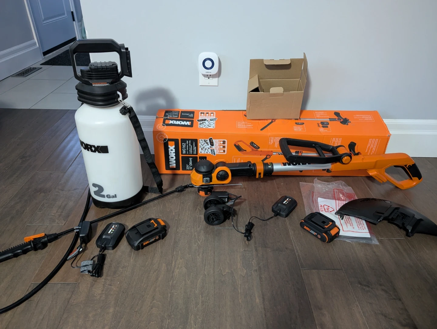 New Worx cordless 20V yard sprayer and weed trimmer for sale. Worx WG829 20V power share 2 gallon cordless yard sprayer, $120 FIRM. Worx WG162 20V power share 12” cordless string trimmer and lawn edger, $100 FIRM. Both come with 20V battery and charger. $200 FIRM for both.