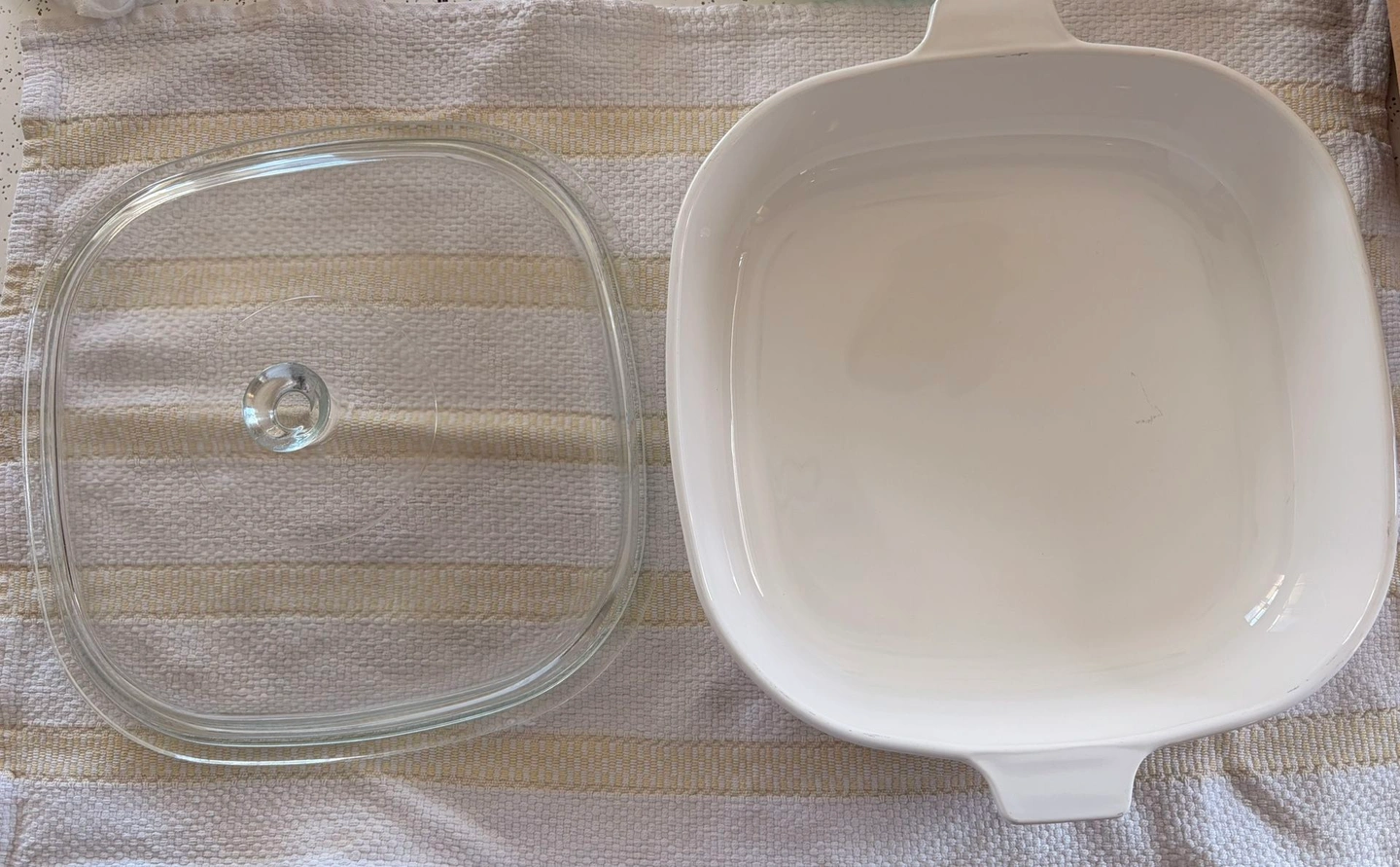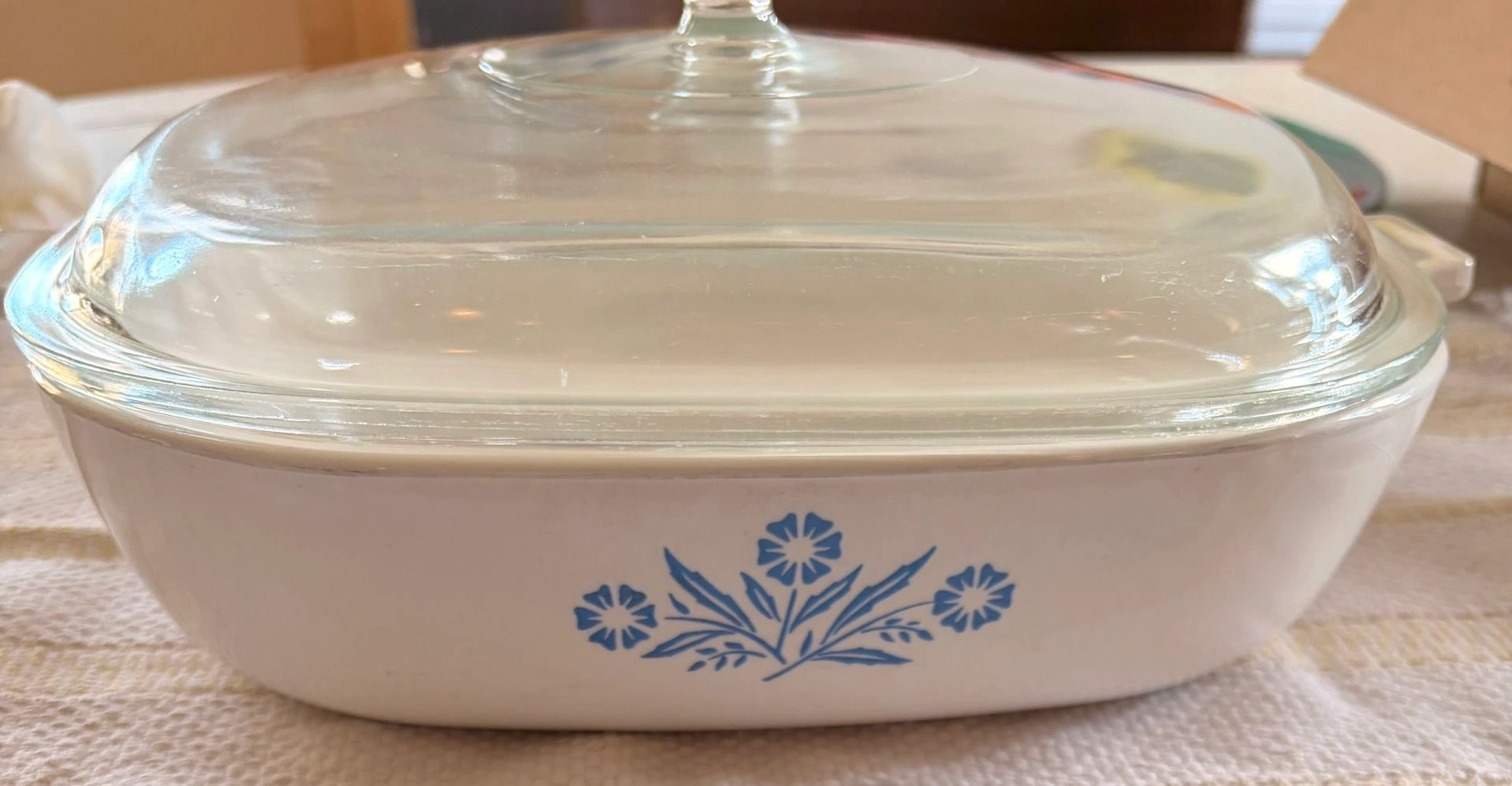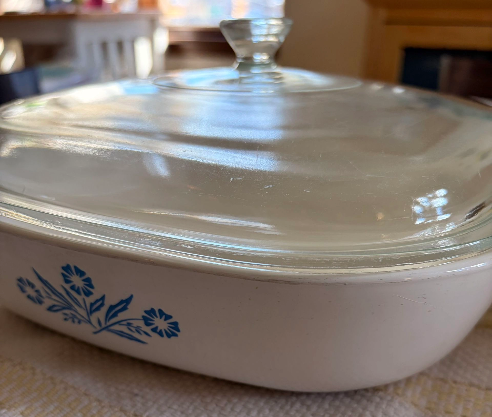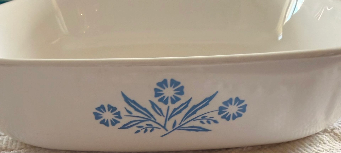 This is a vintage 60's Corning Ware P-10-B Blue Cornflower 10" casserole dish with its original glass lid. It's dishwasher, oven, and microwave safe. In great condition with a small mark inside (see photo), but otherwise like new. No nicks, cracks, or discoloration. The original lid is included, which is often missing. Feel free to message if you have any questions!