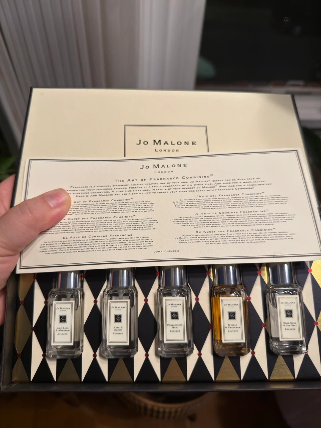 Selling a Jo Malone Cologne Collection set! This set includes five different scents: Lime Basil & Mandarin, Basil & Neroli, Pomegranate Noir, Mimosa & Cardamom, and Wood Sage & Sea Salt. Each cologne comes in a 0.3 fl oz / 9 ml bottle. Perfect for trying out different fragrances or for travel
