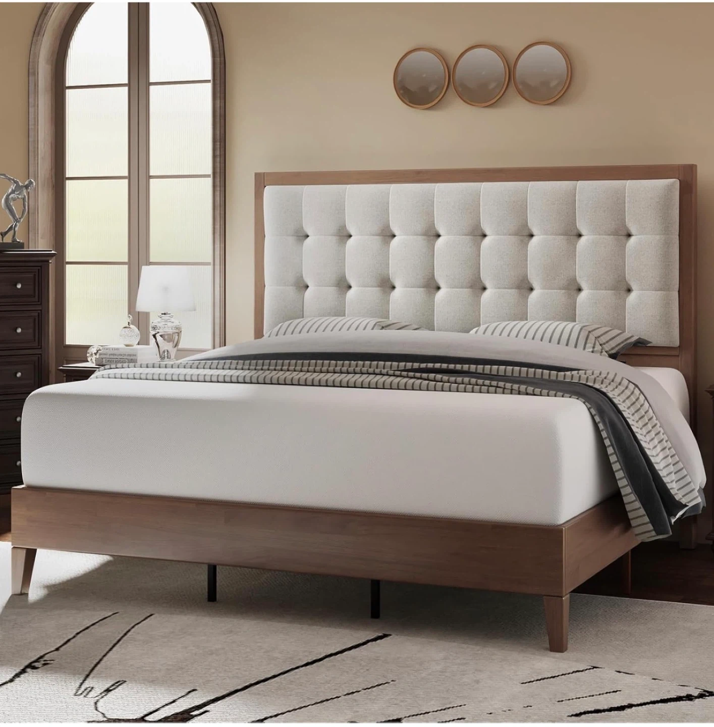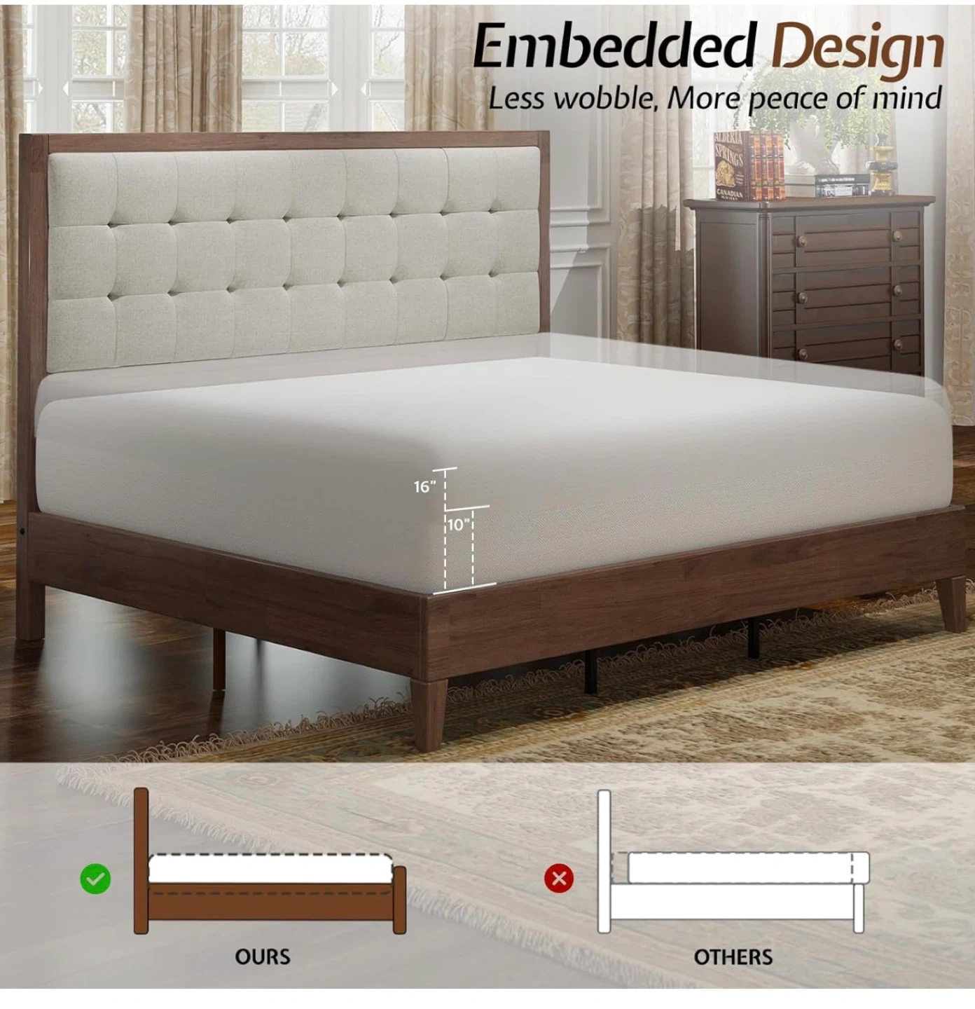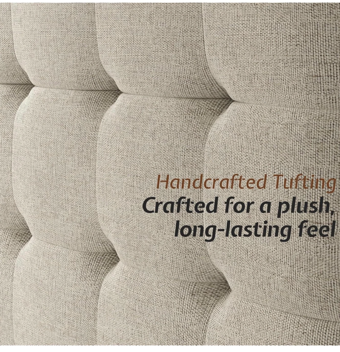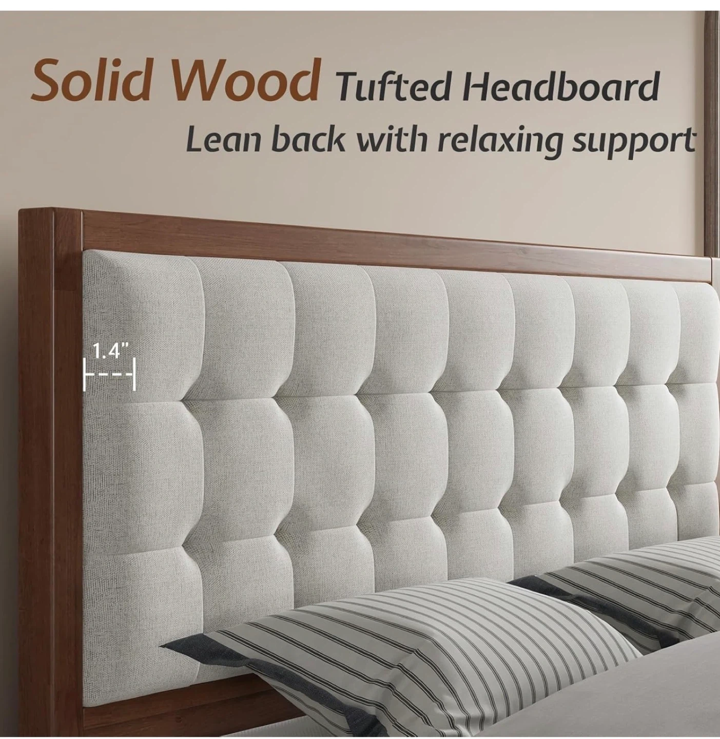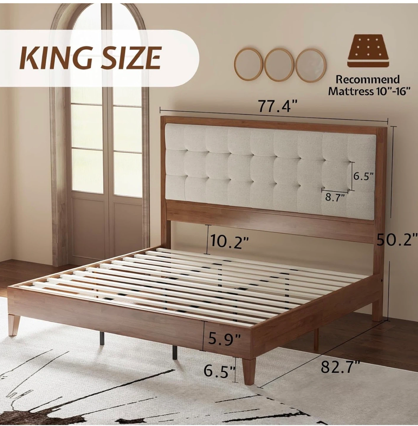 36This is a king size bed frame with a solid wood tufted headboard. The headboard is designed for lean back with relaxing support. It's handcrafted tufting and crafted for a plush, long-lasting feel. The headboard is 50" tall.