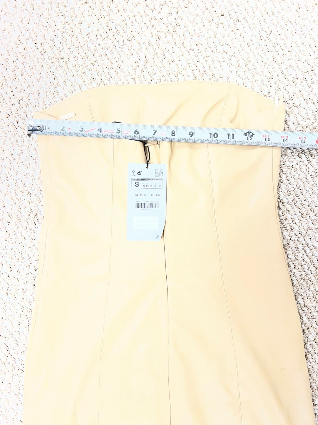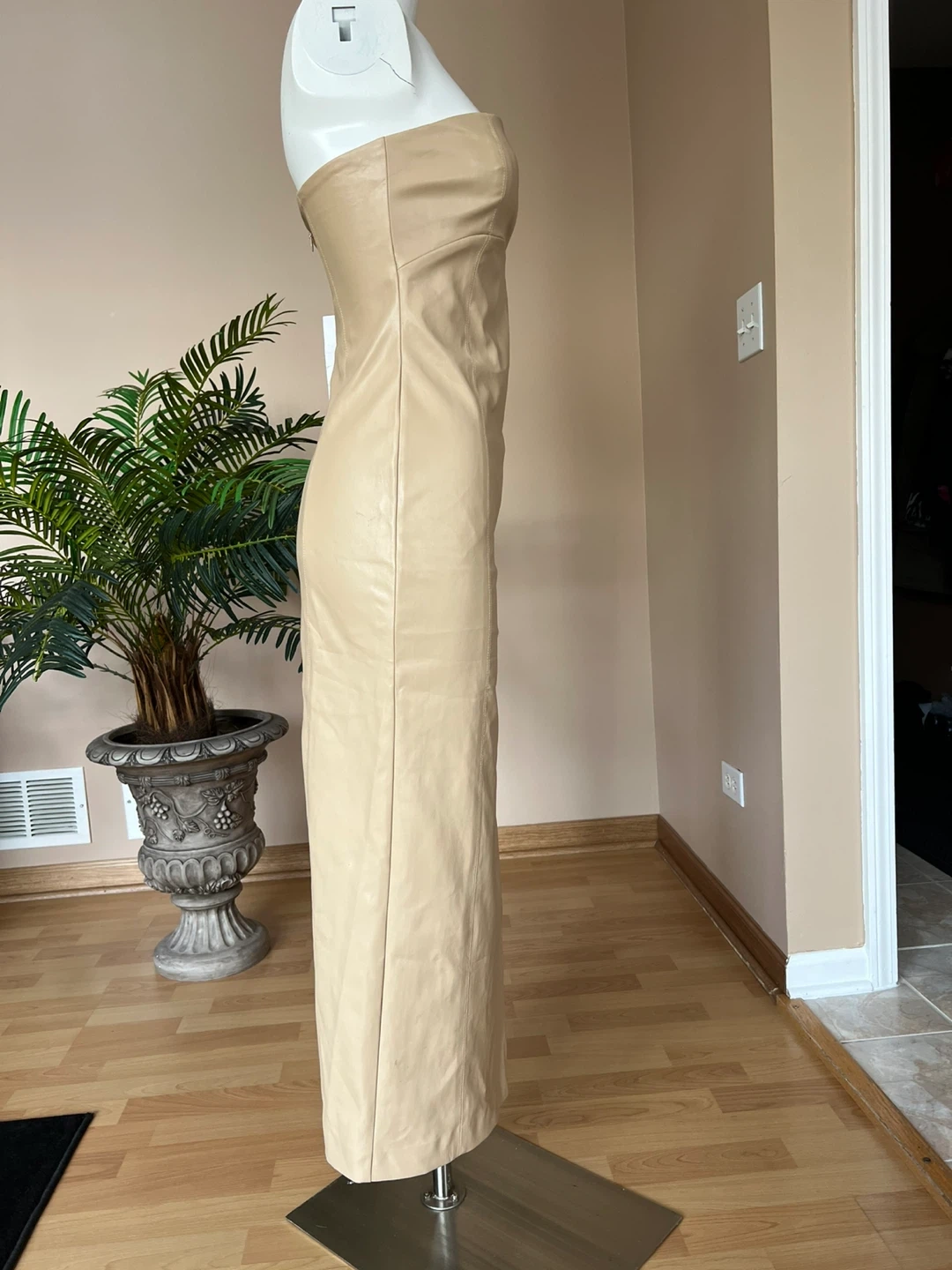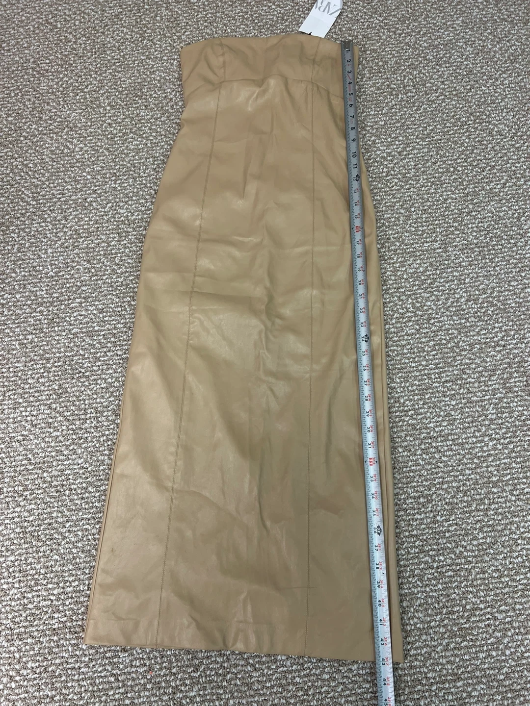 Selling a Zara faux leather strapless dress in a size small. It's a beautiful beige color, NWT, stretchable. Perfect for a night out or a special occasion! Retail price $150.