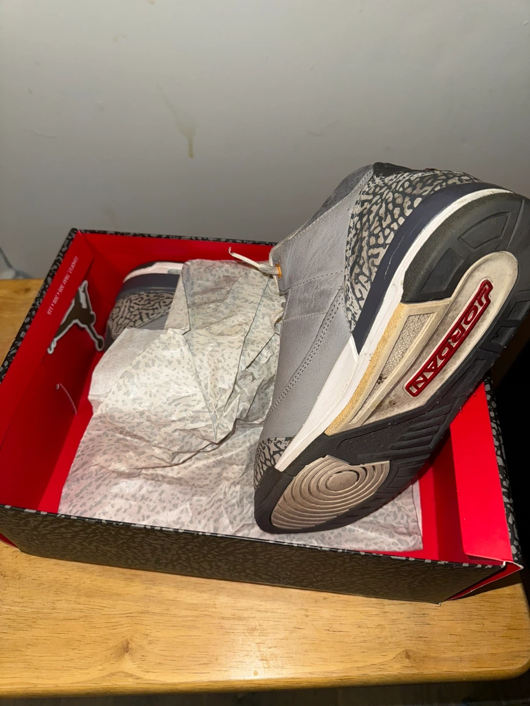 Selling a pair of Jordan 3 Retro Cool Grey 2021 sneakers. They come with the original box. The shoes are in used condition; please see the pictures for details! Only if you are interested, don't waste your time.