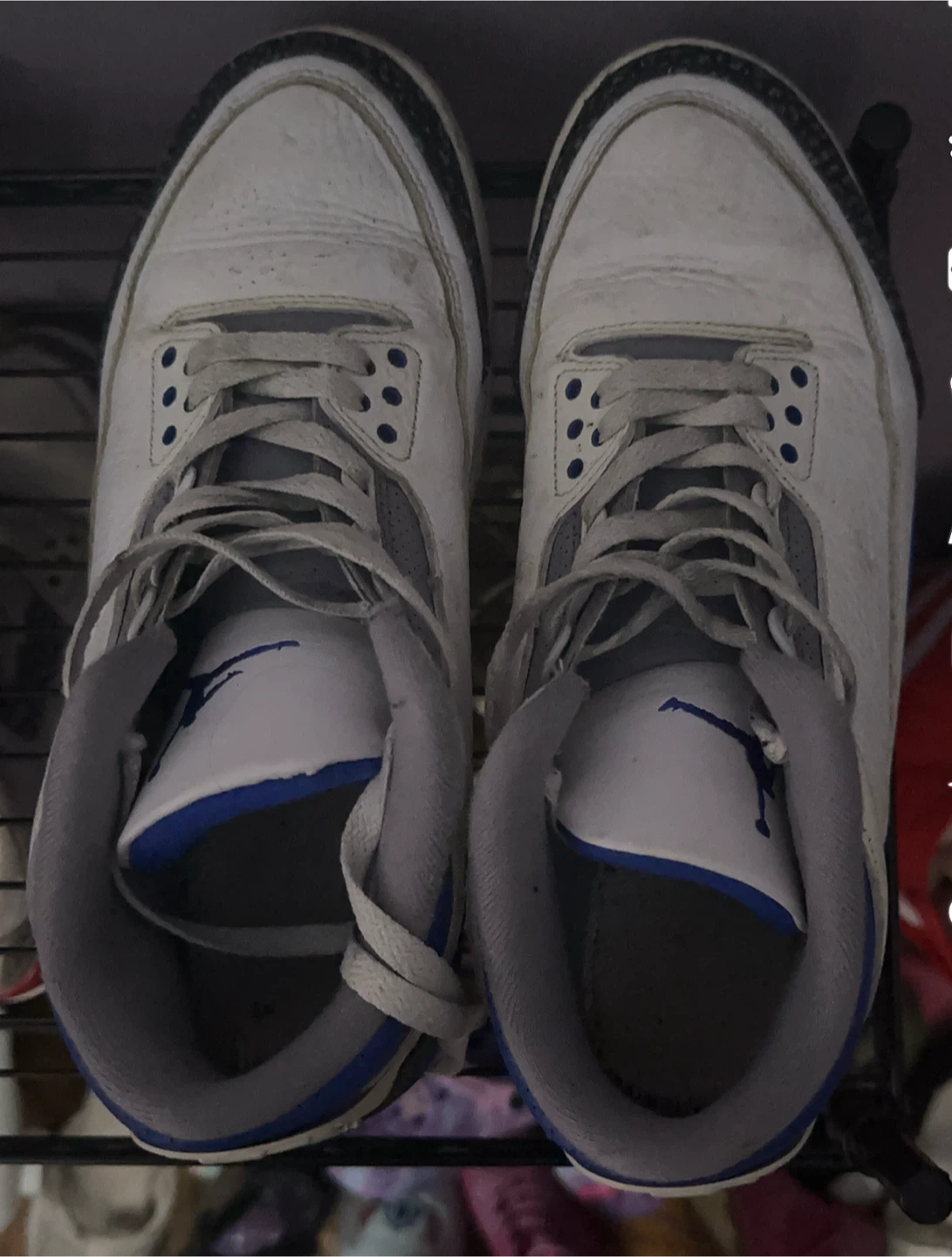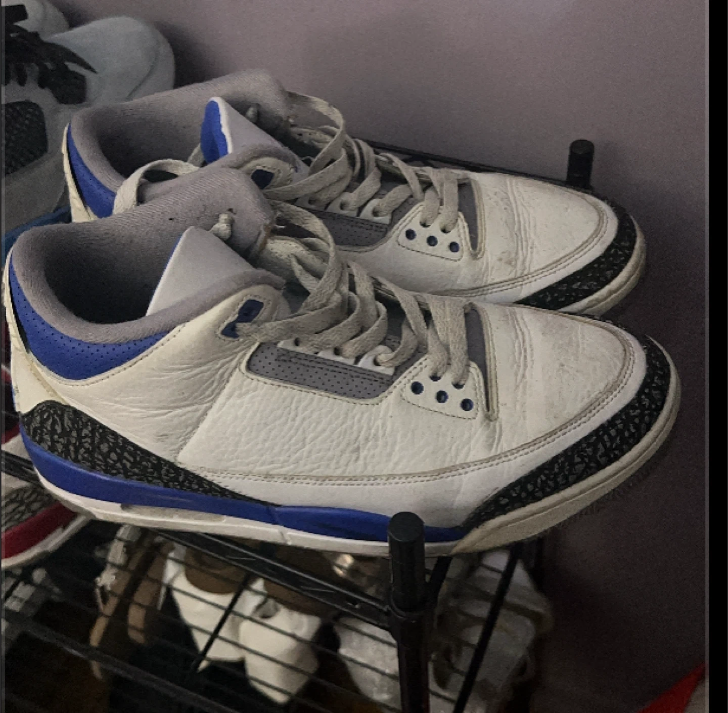 20Selling a pair of Jordan 3 Retro Racer Blue sneakers in size 10.5 US. They have some wear, as you can see in the pictures, but still have plenty of life left in them. (Pick up only)