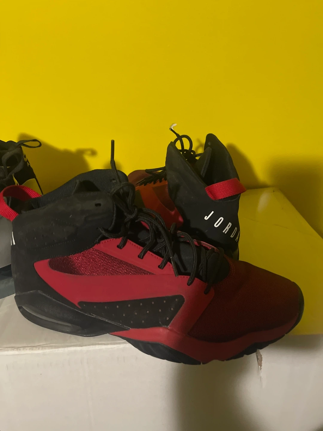 65Selling a pair of Jordan basketball shoes in red and black. They are in good condition and ready for the court! No box