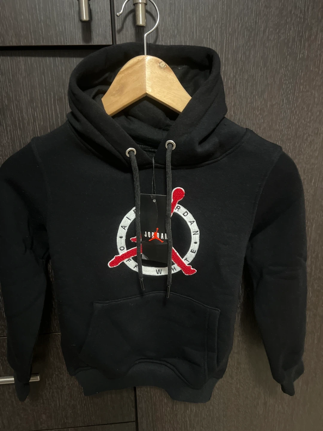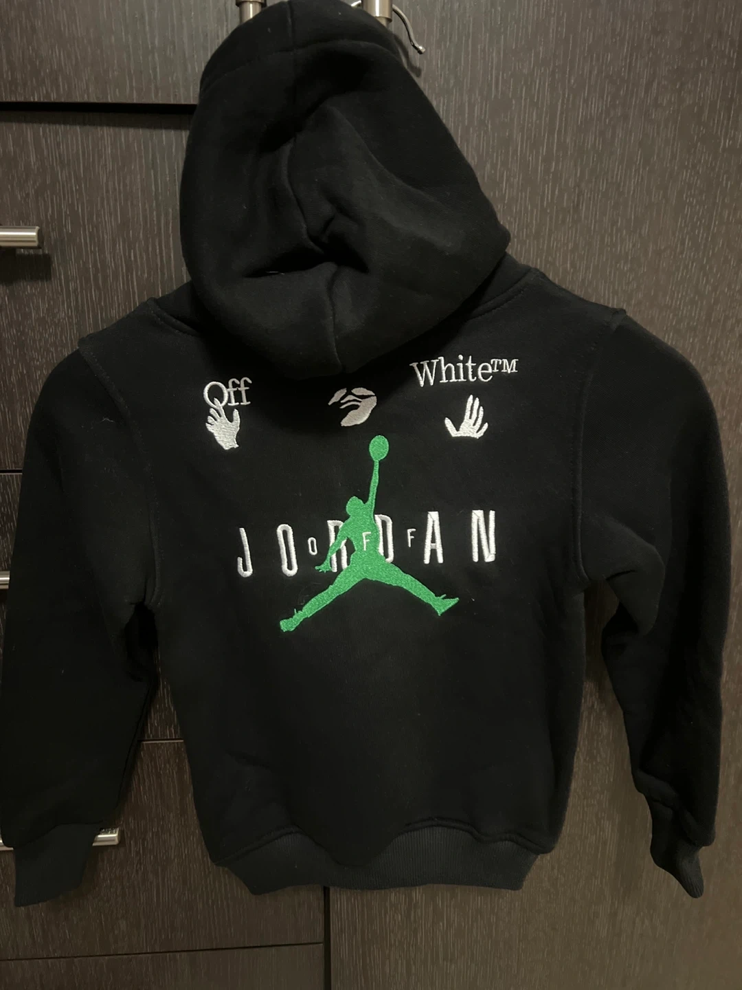 34Selling a Jordan x Off-White kids' hoodie in black! It's in great condition and features the iconic Jordan logo with Off-White's signature design elements. The size is 116.