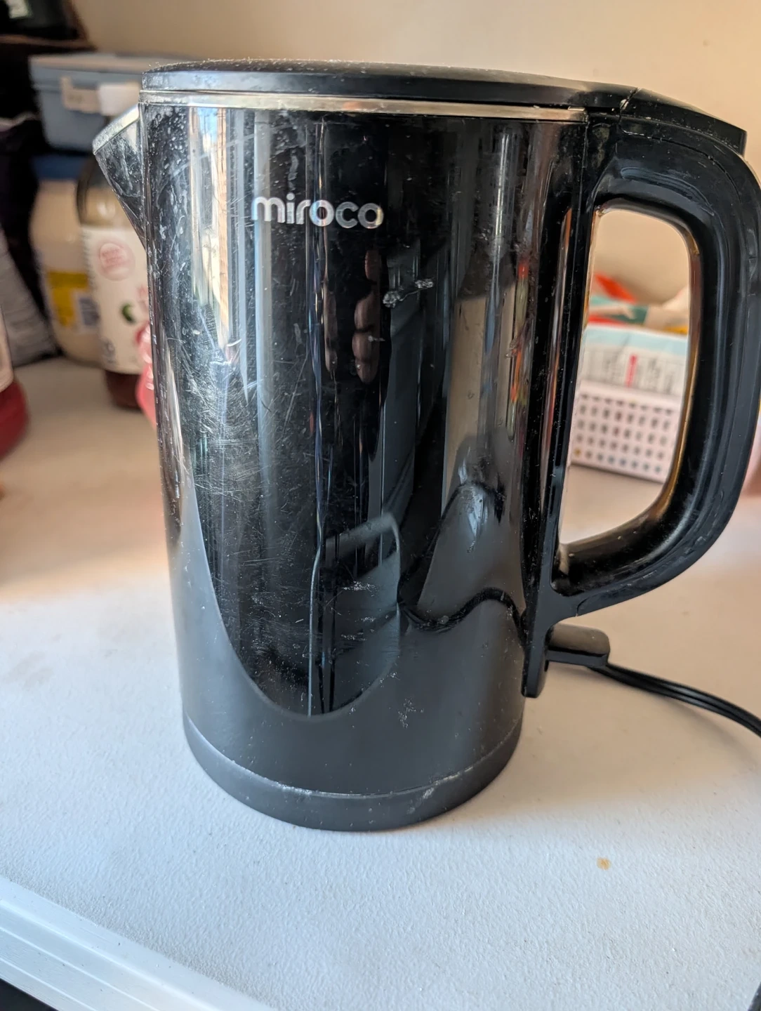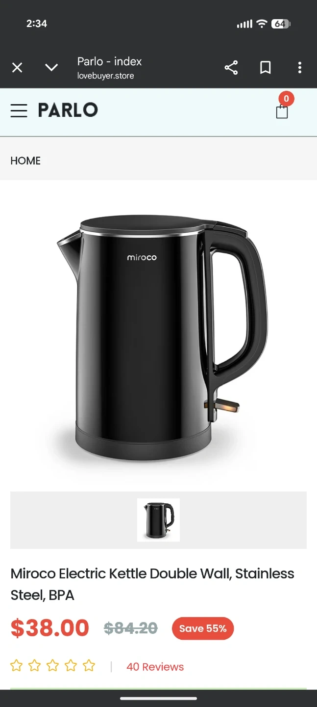 Miroco electric kettle with double wall construction. It's made of stainless steel and is BPA free. This black kettle is perfect for quickly boiling water for tea or coffee!π
