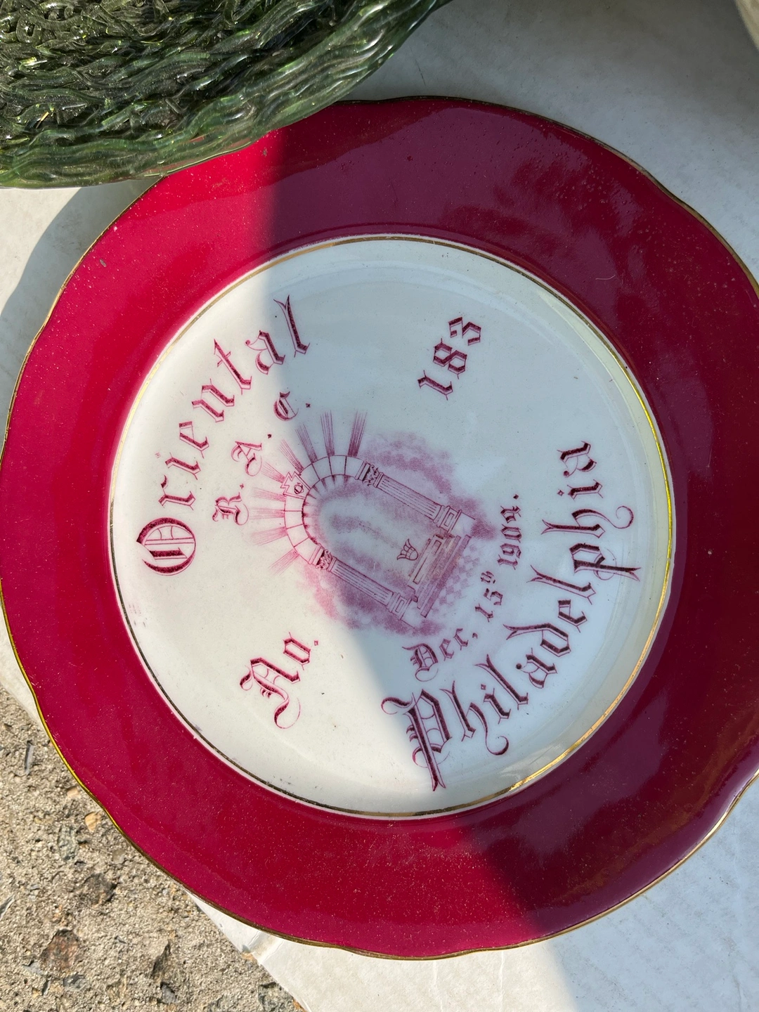 Masonic Oriental #183 Philadelphia Collector Plate Dec. 15th 1909 9 1/4" VGC. For decoration only, not for food. Price negotiable. I can bring it to Brooklyn queens or manhattan for free. Any questions lemme know