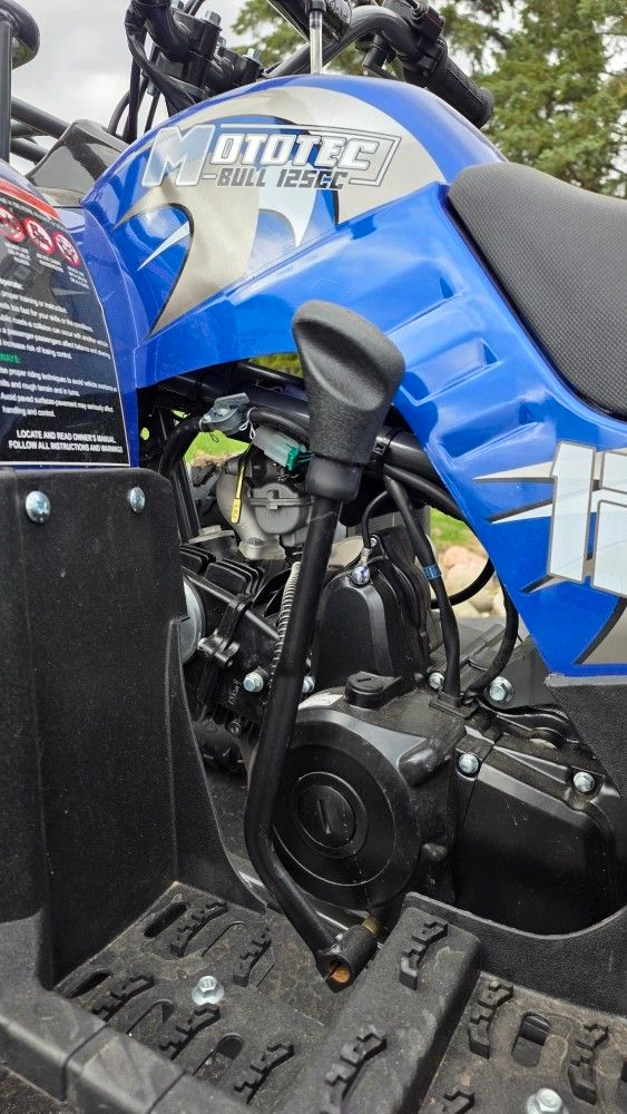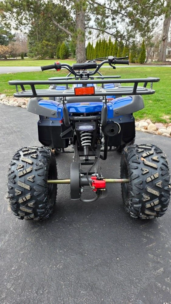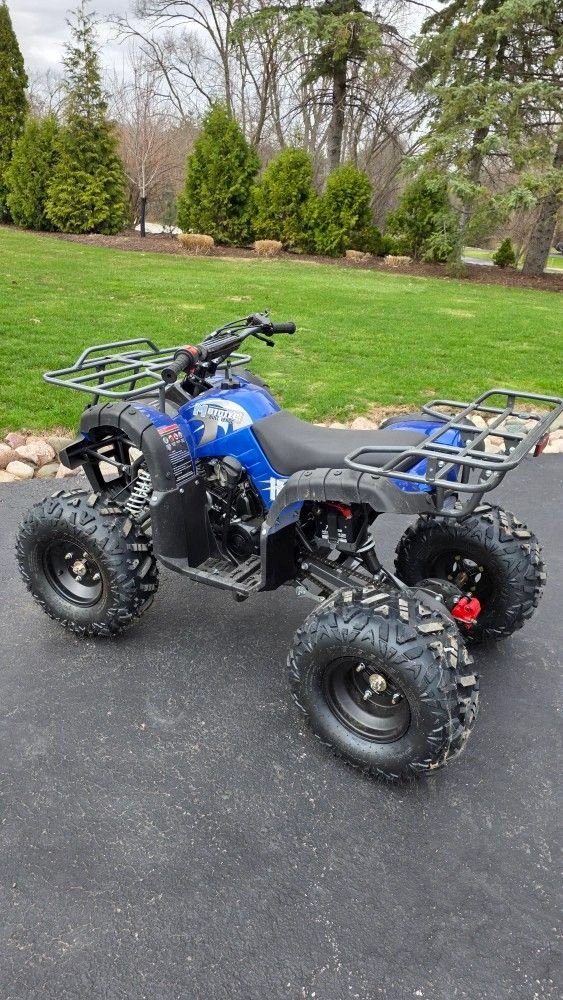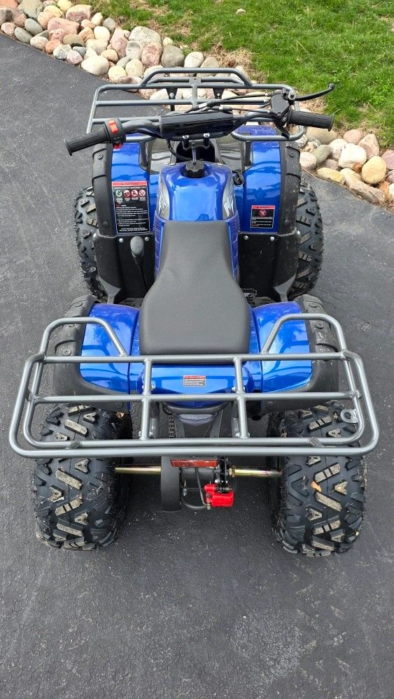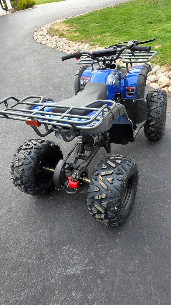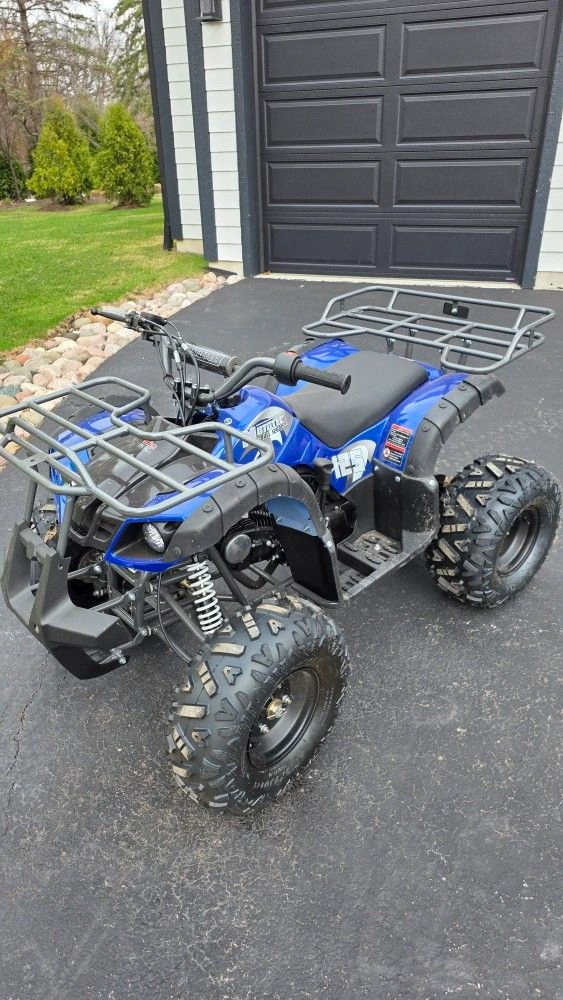Like new ATV. Daughter rode around once and lost interest. It's a smaller size for kids and it's designed to limit throttle so it's still safe. Runs on regular gasoline. Electric start with a key.