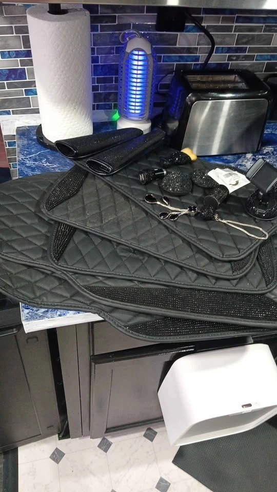 Set of 4 all-weather rubber car floor mats. Designed to fit most cars, SUVs, and trucks. Durable and easy to clean. Protects your vehicle's interior from dirt, spills, and wear. Includes front and rear mats. Accessories included. Garbage bag