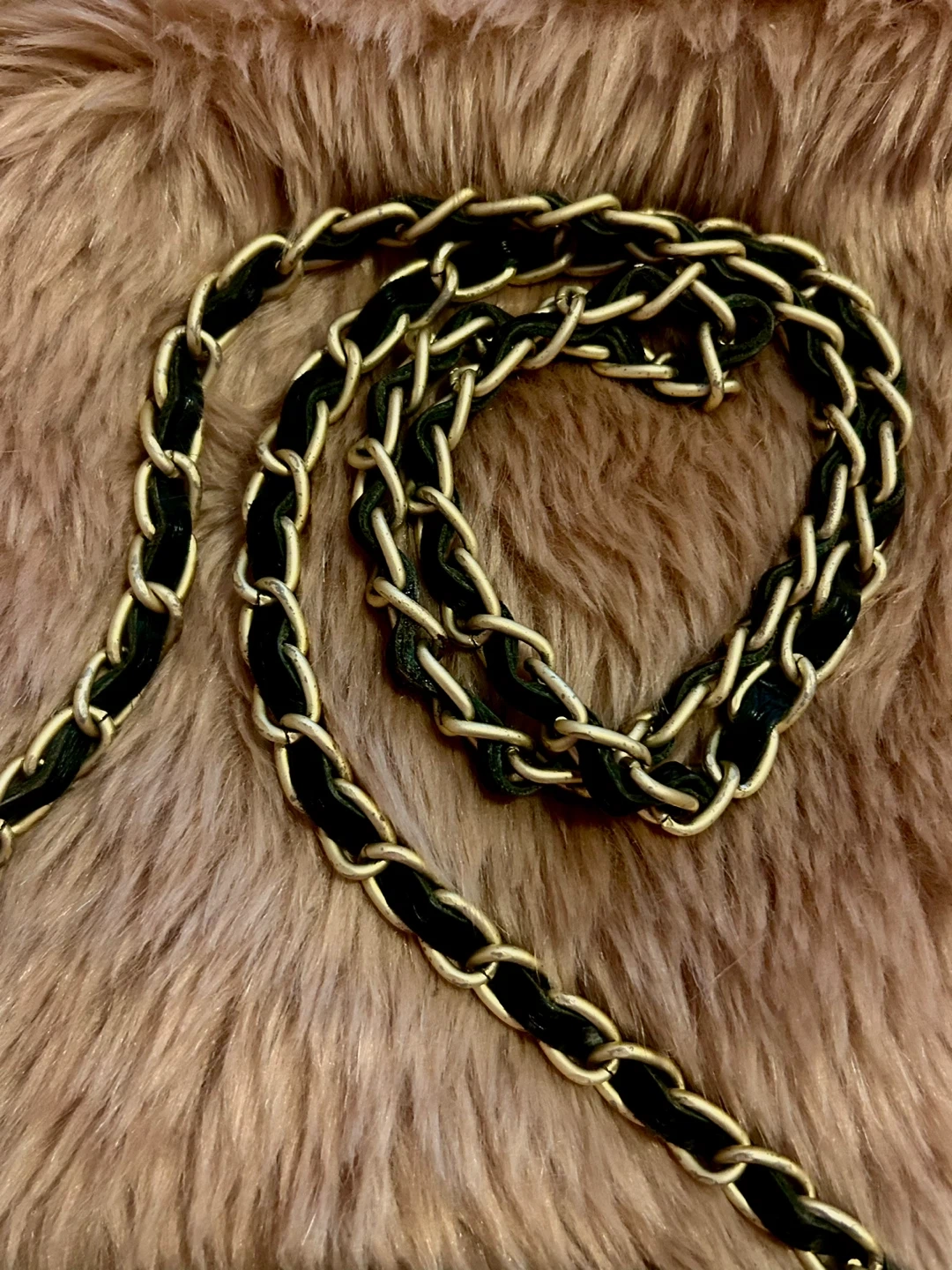 • Includes a luxurious 25” drop gold metal chain leather trim strap that can be adjusted