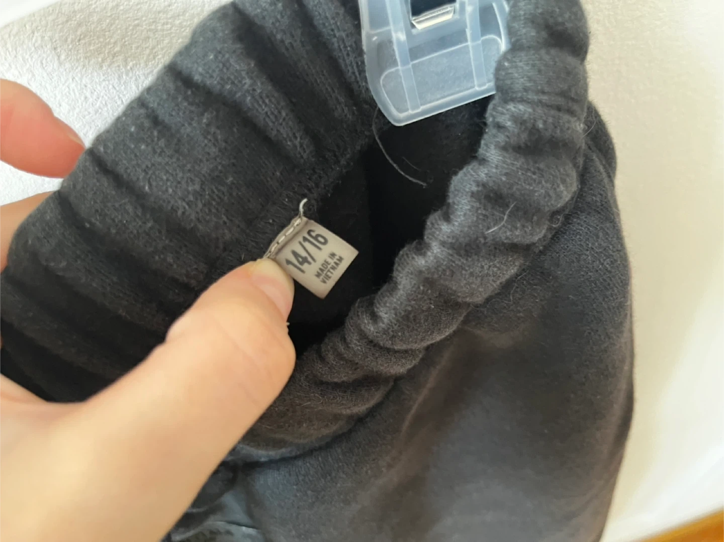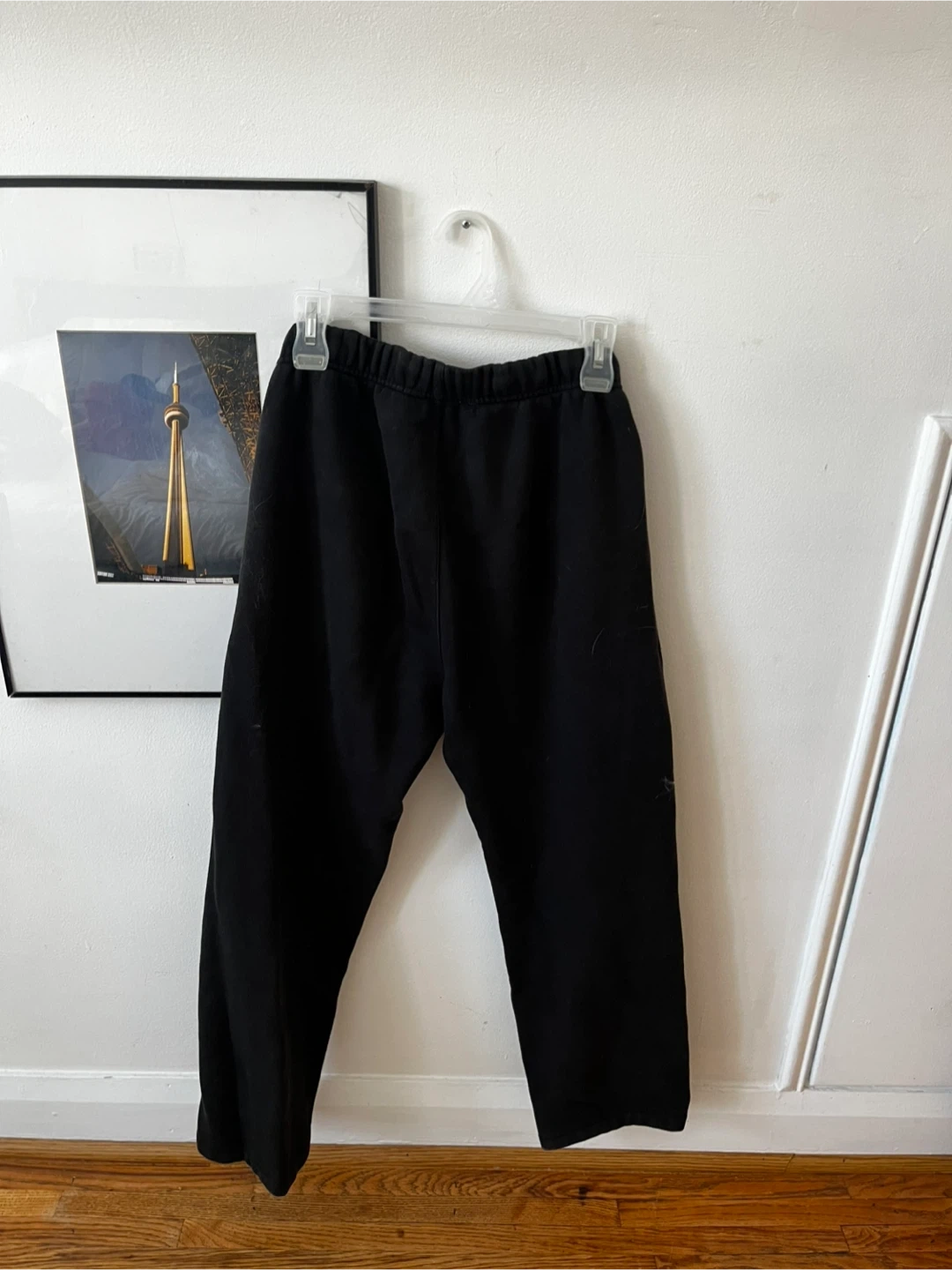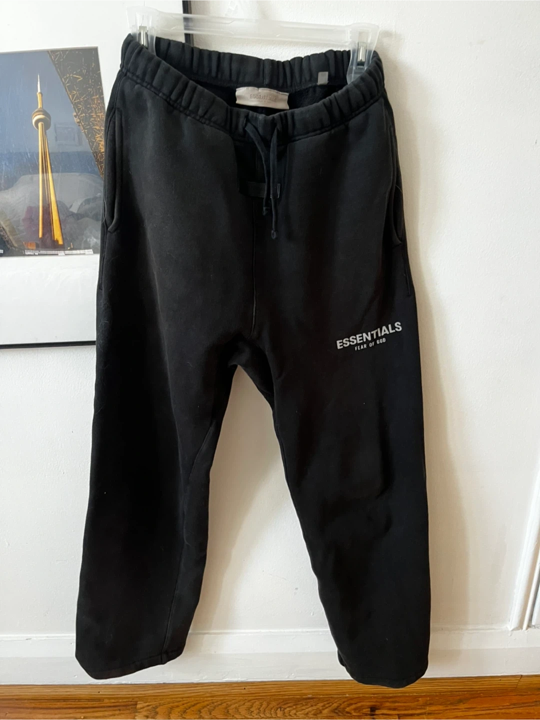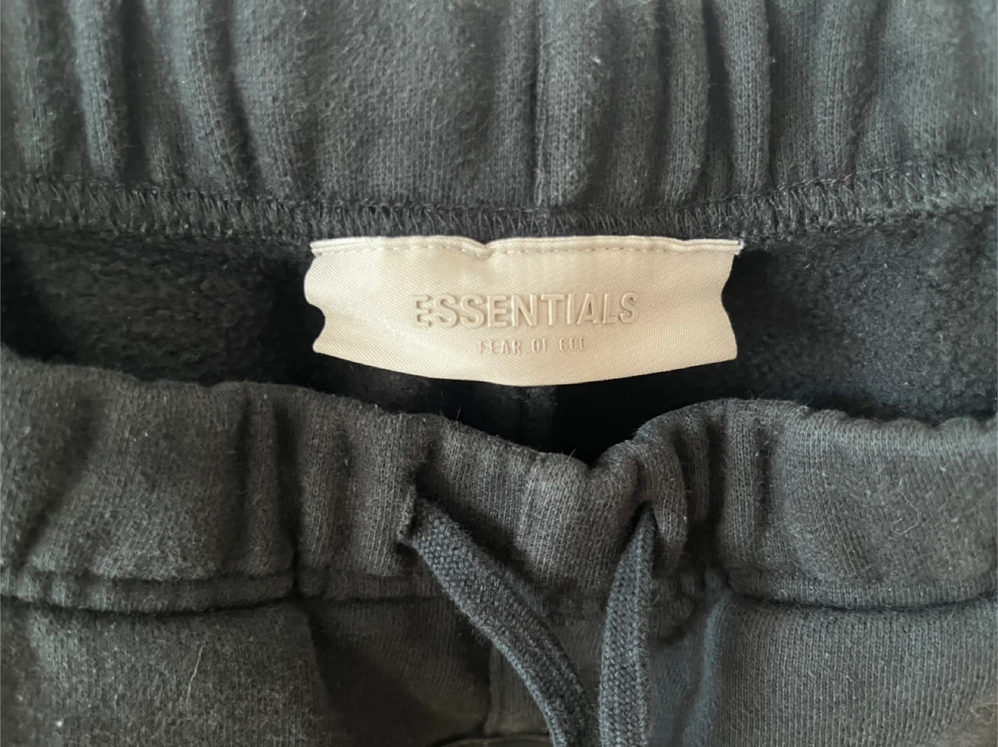 These black sweatpants are from the brand Essentials Fear of God. They're a size 14/16. Made in Vietnam.
