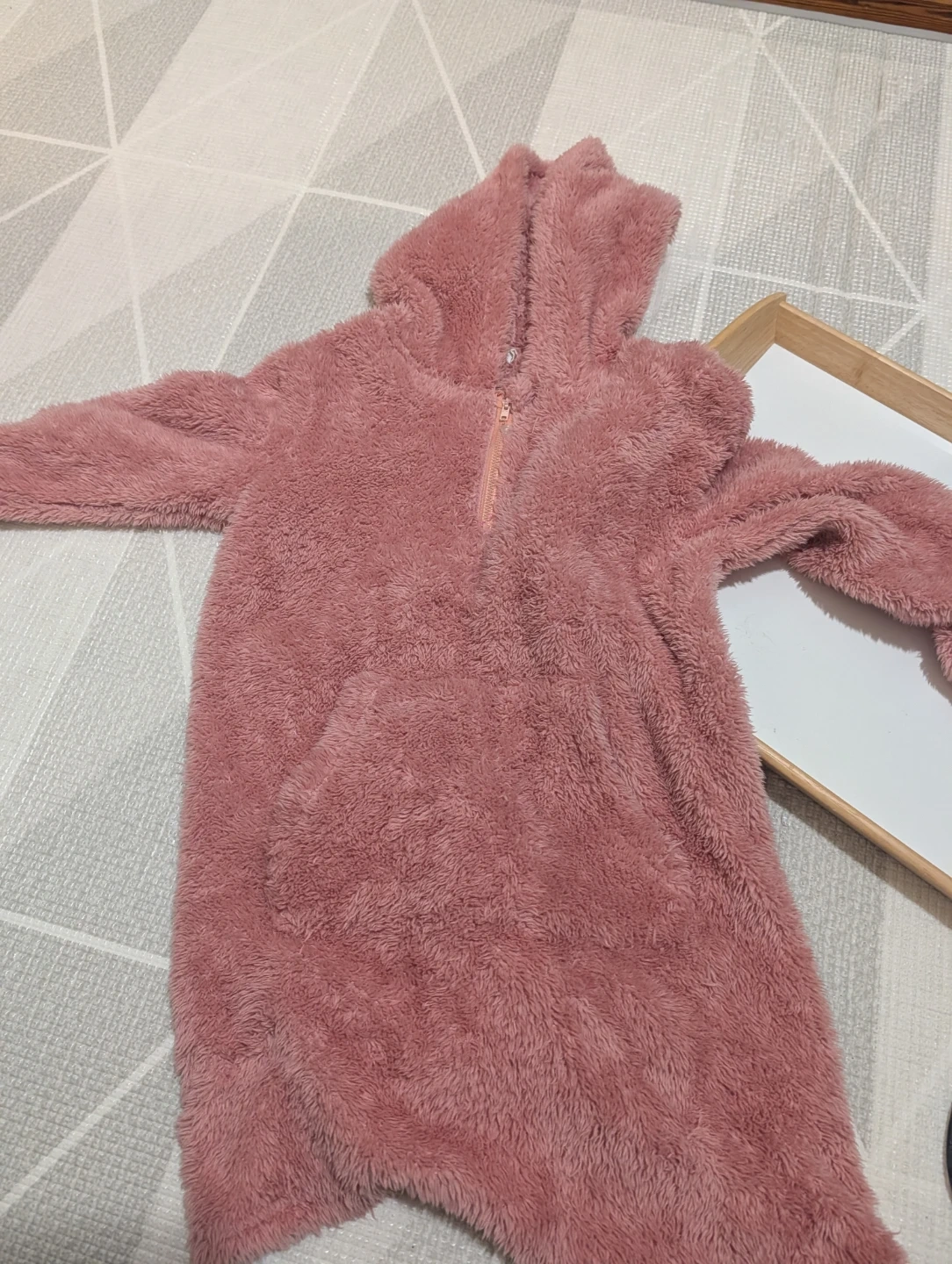 Shein Pink Fuzzy Fleece Hooded Onesie Pajamas Size S