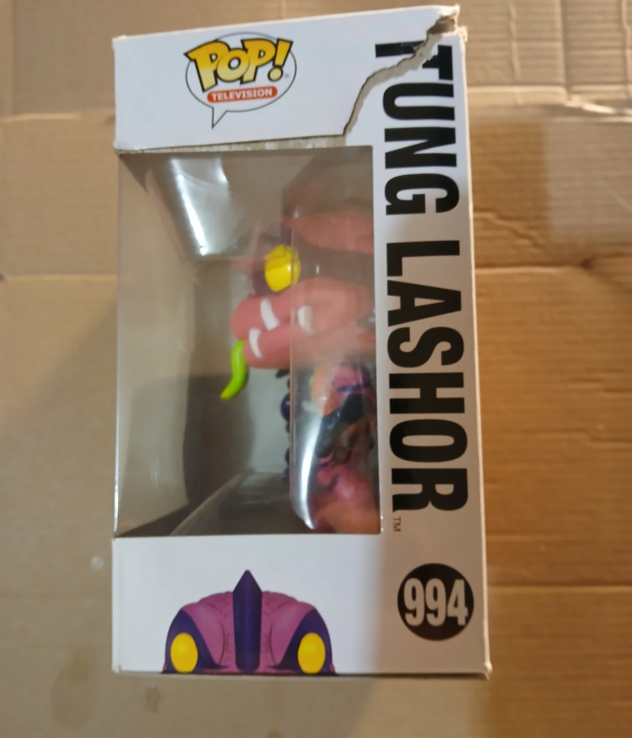 This is a Funko Pop! vinyl figure of Tung Lashor from Masters of the Universe. The figure is number 994 in the collection. It comes in its original box.