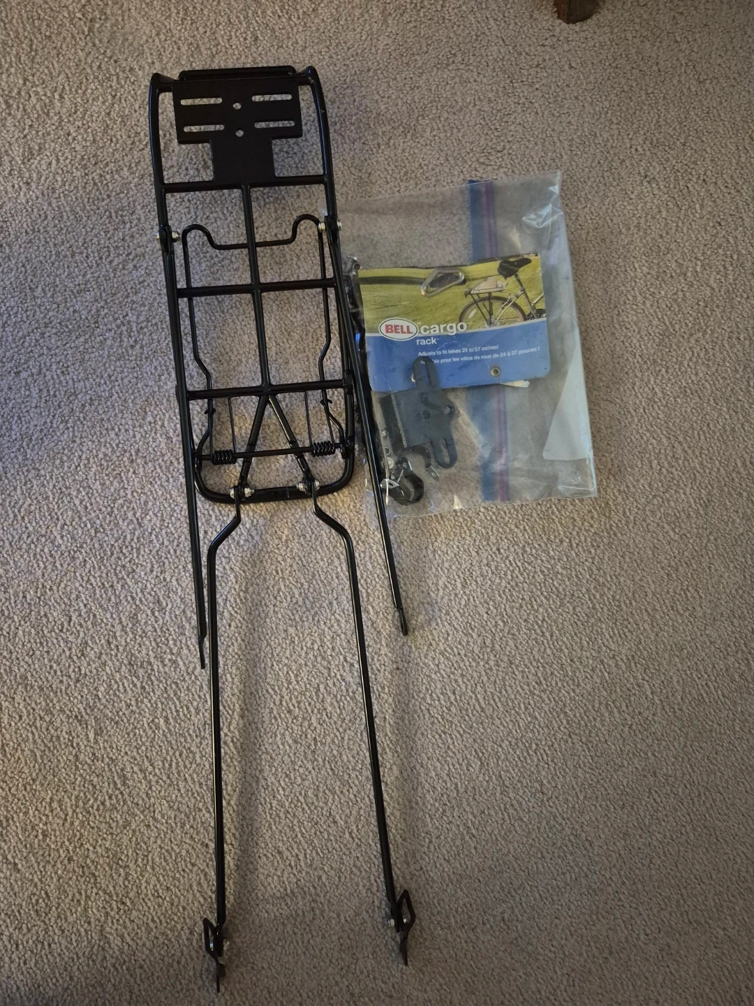 Selling a Bell cargo rack that adjusts to fit bikes with 24 to 27 inch wheels. It's in great condition and ready to be installed on your bike! Comes with all the necessary hardware and instructions for easy setup