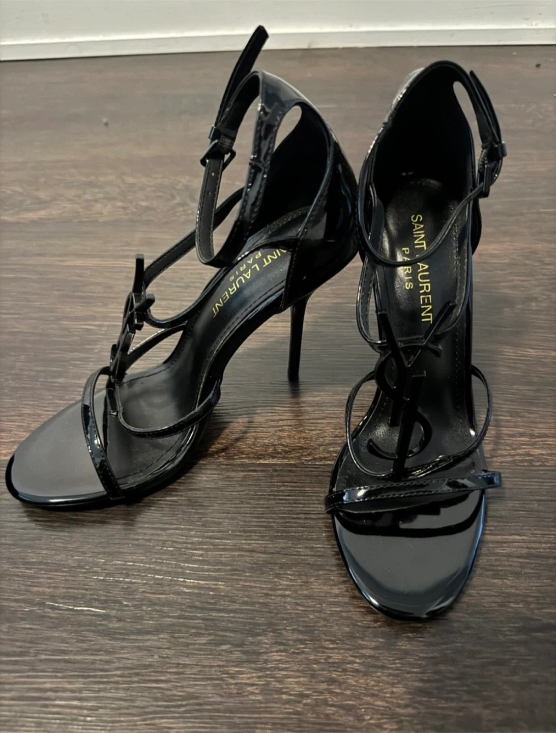 Saint Laurent Black Patent Leather YSL Heels Size 35