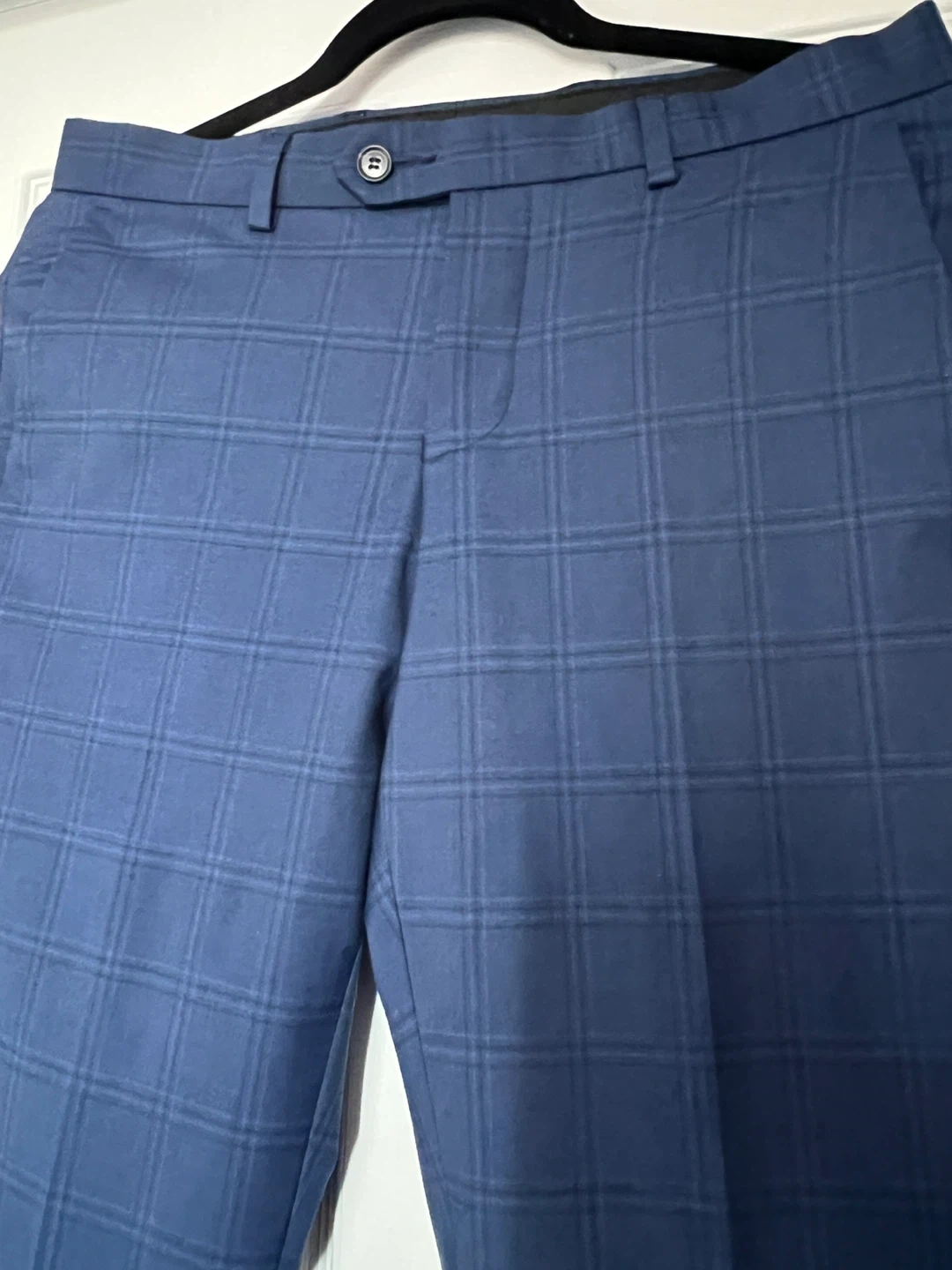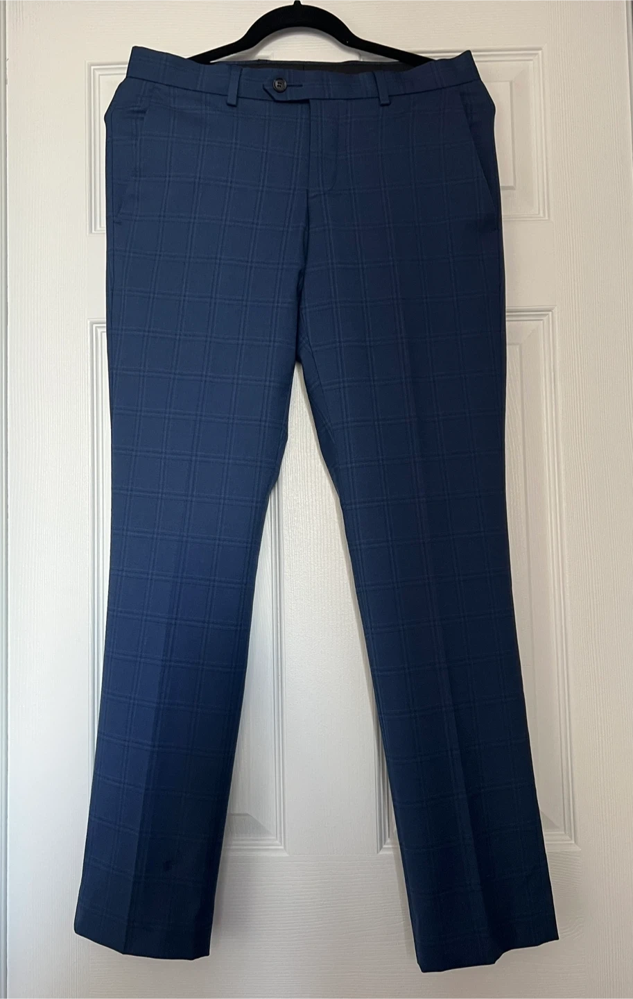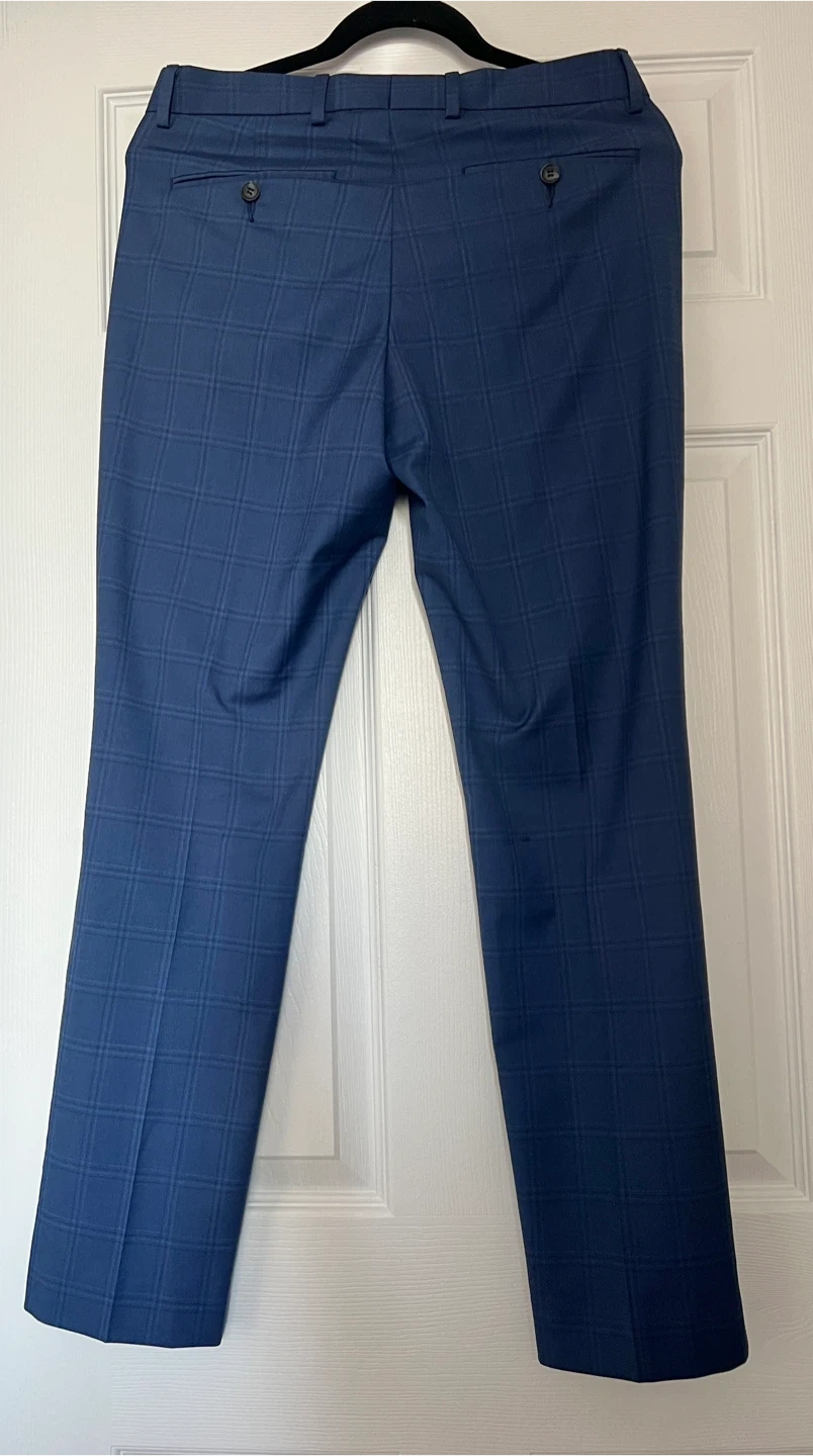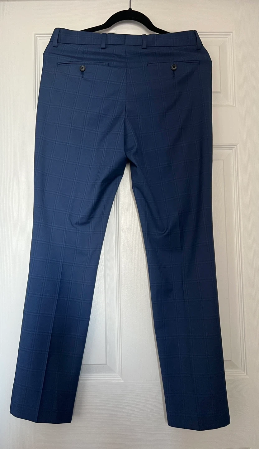 Selling a good looking pair of men's slim leg dress pants. They are a blue plaid pattern. Great for work or a night out! Perfect condition. Rarely worn.