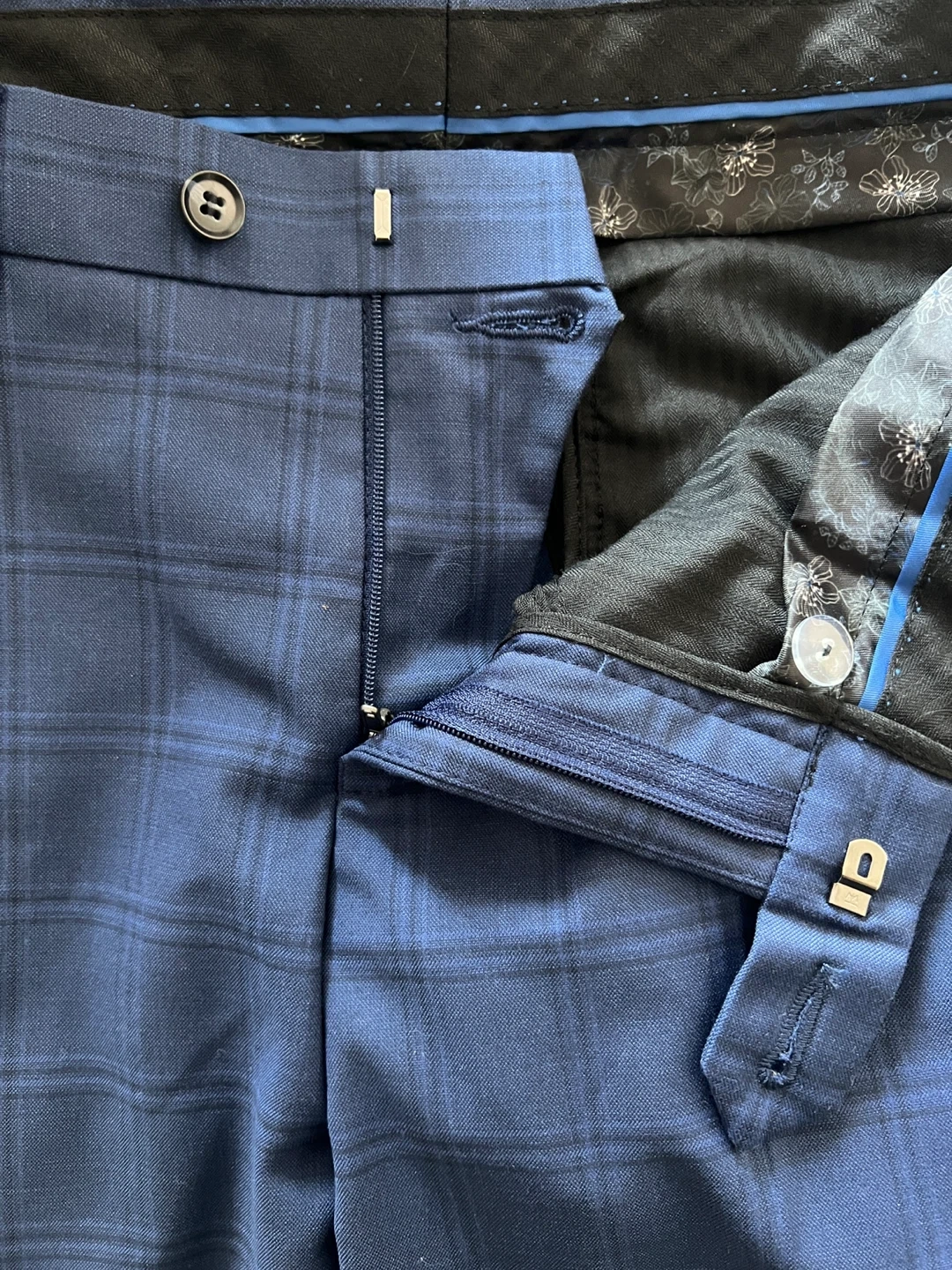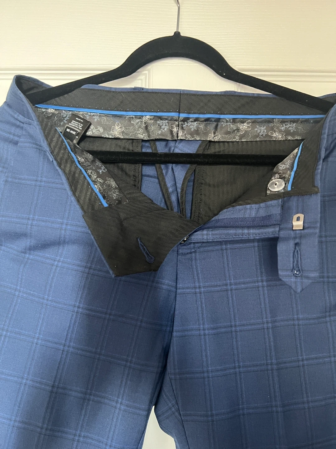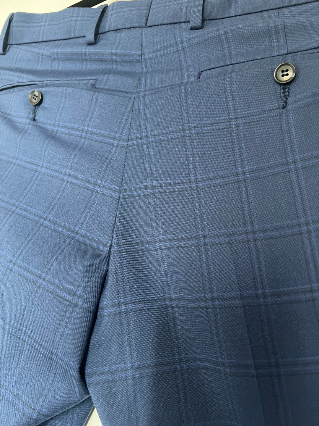 Selling a good looking pair of men's slim leg dress pants. They are a blue plaid pattern. Great for work or a night out! Perfect condition. Rarely worn.