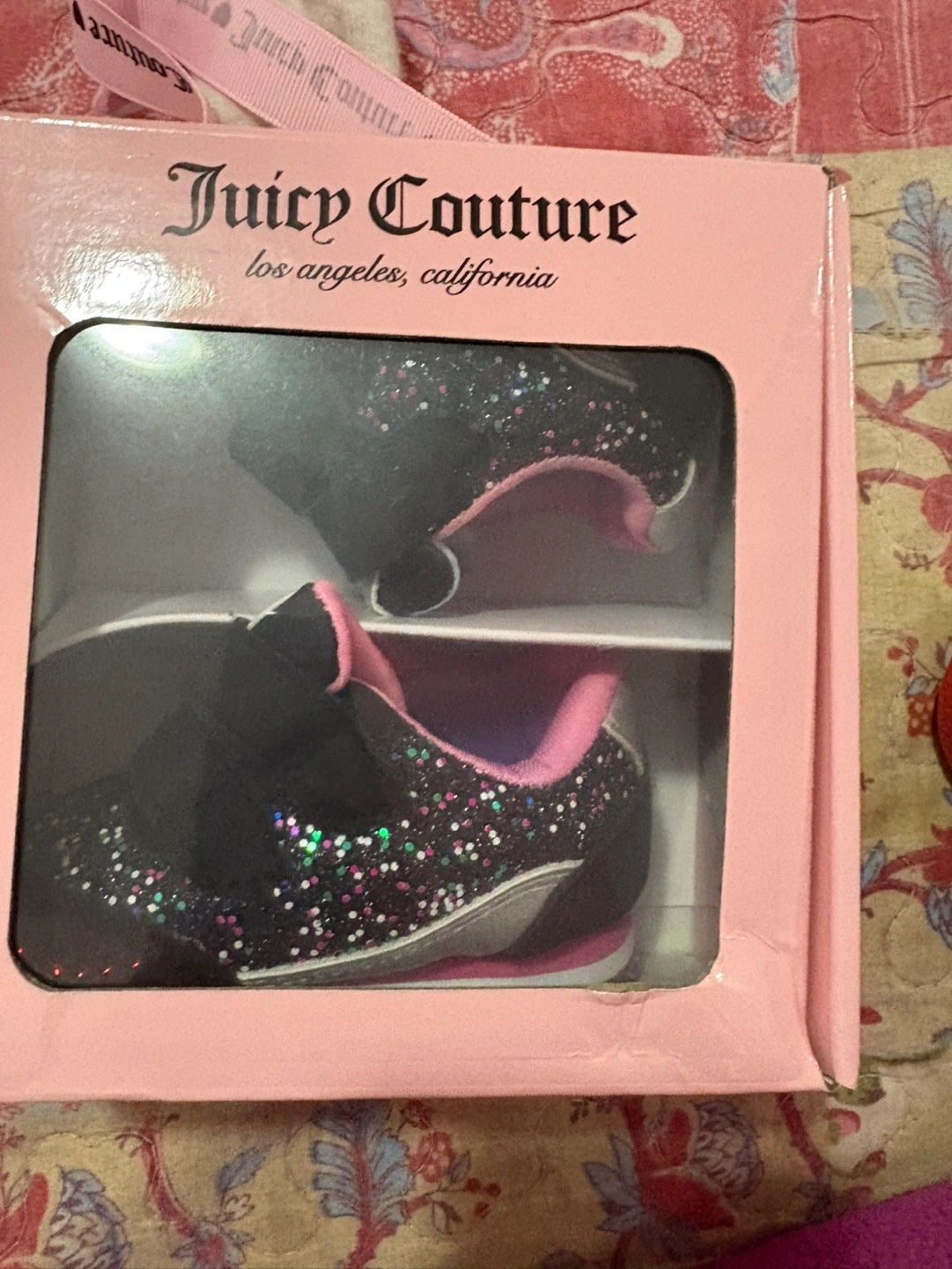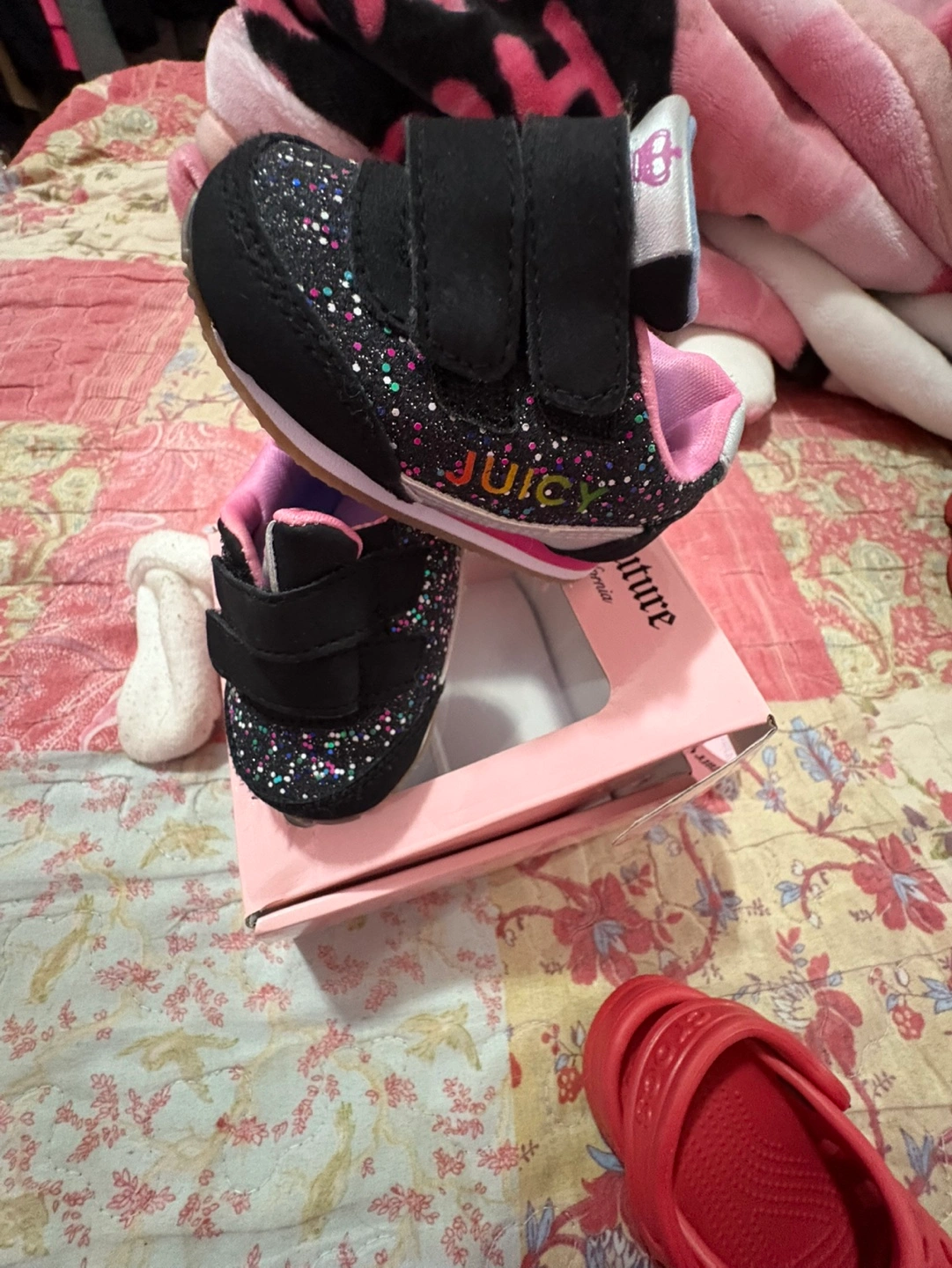 Adorable baby girl sneakers. Black with rainbow glitter. Size 1, fits 0-3 months New in box.