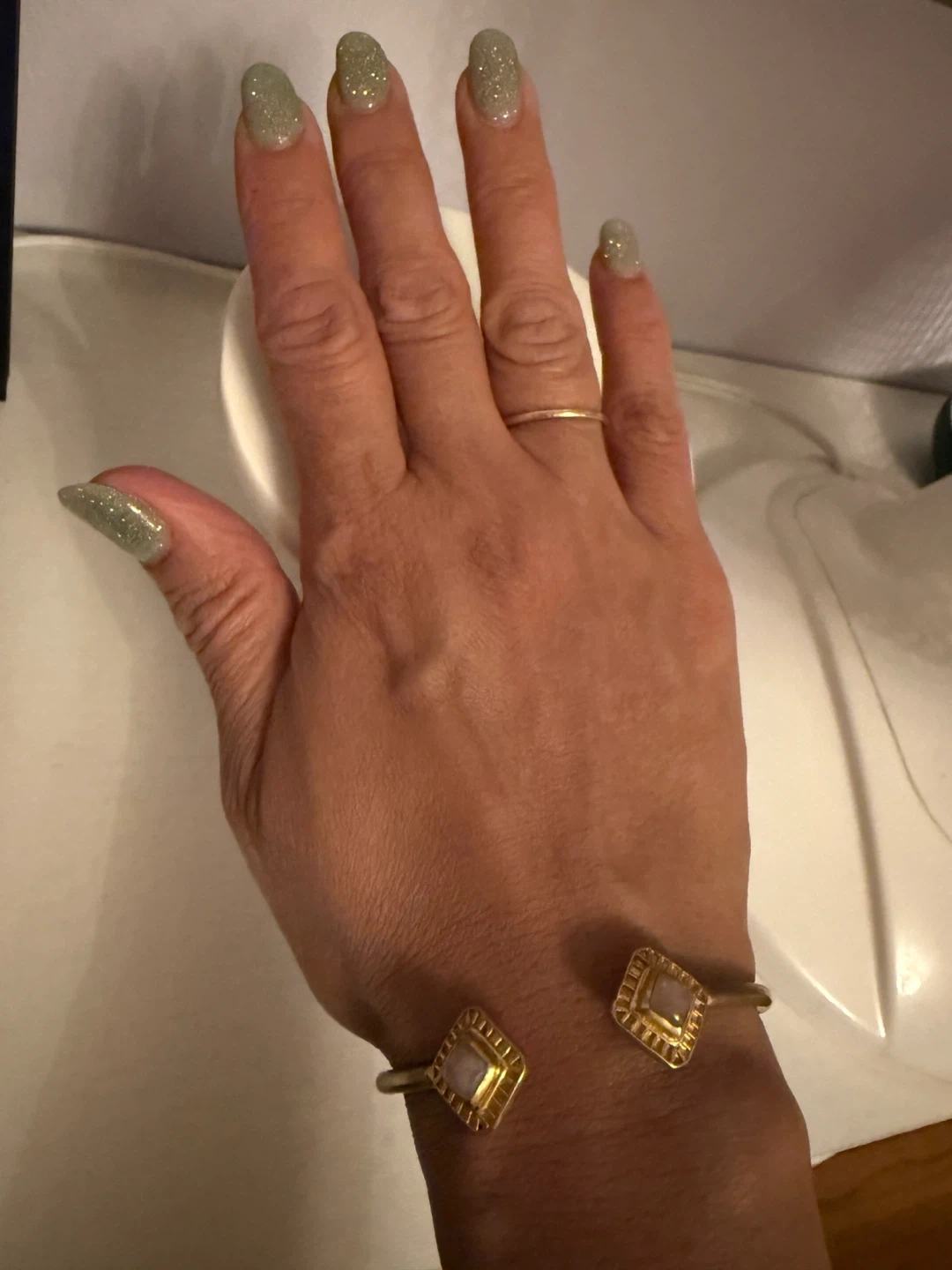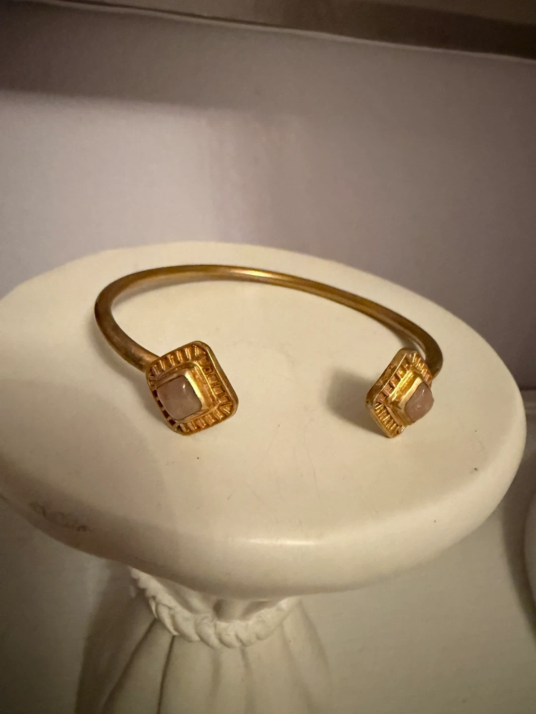 299Selling a Julie Vos gold plated cuff bracelet. It features square stones on each end. It's in good condition!